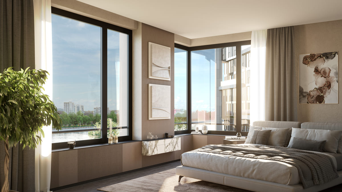 Планировочные решения продуманы до мелочей: в проекте – квартиры от 24 до 107 м², большинство – с видами на воду, просторными кухнями-гостиными, гардеробными и мастер-спальнями.