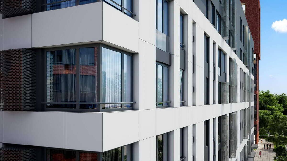 Ритм здания подчёркнут светом: инсоляция здесь продумана так, чтобы квартиры получали максимум дневного света в любое время года.