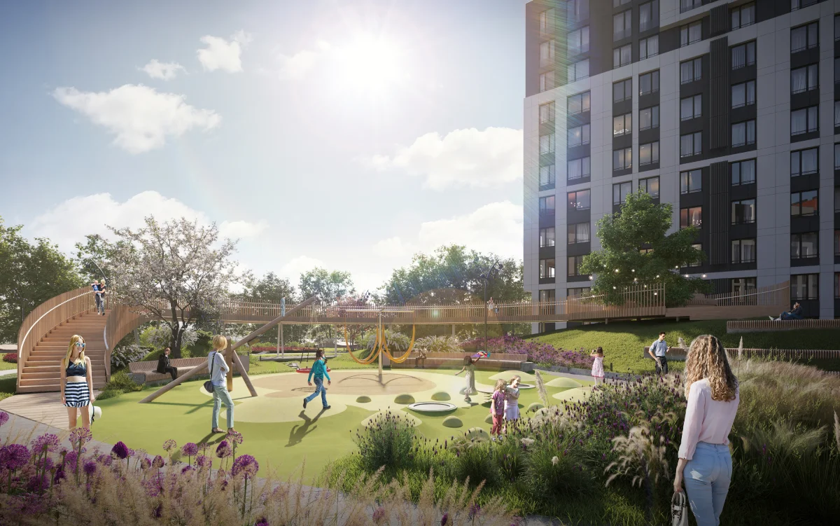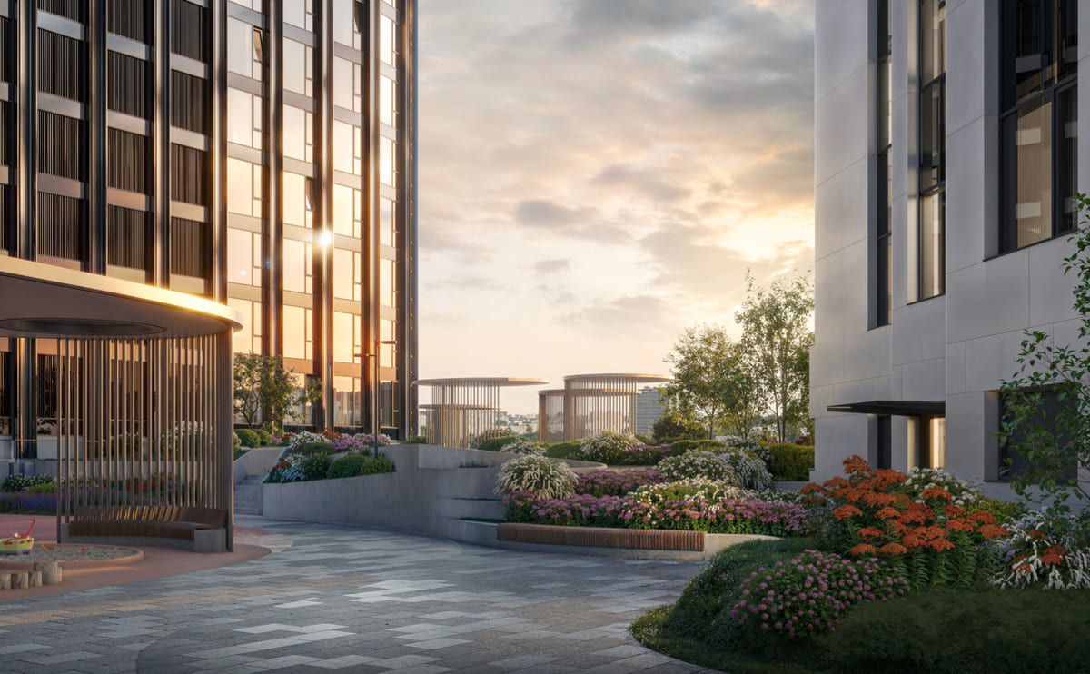 Проект строится как самодостаточная среда. На первых этажах предусмотрены помещения под повседневные сервисы: кафе, магазины, парикмахерские, офисы и развивающие центры для детей. Все это становится частью привычного маршрута – от дома до ближайших дел не нужно ехать, достаточно выйти из подъезда.