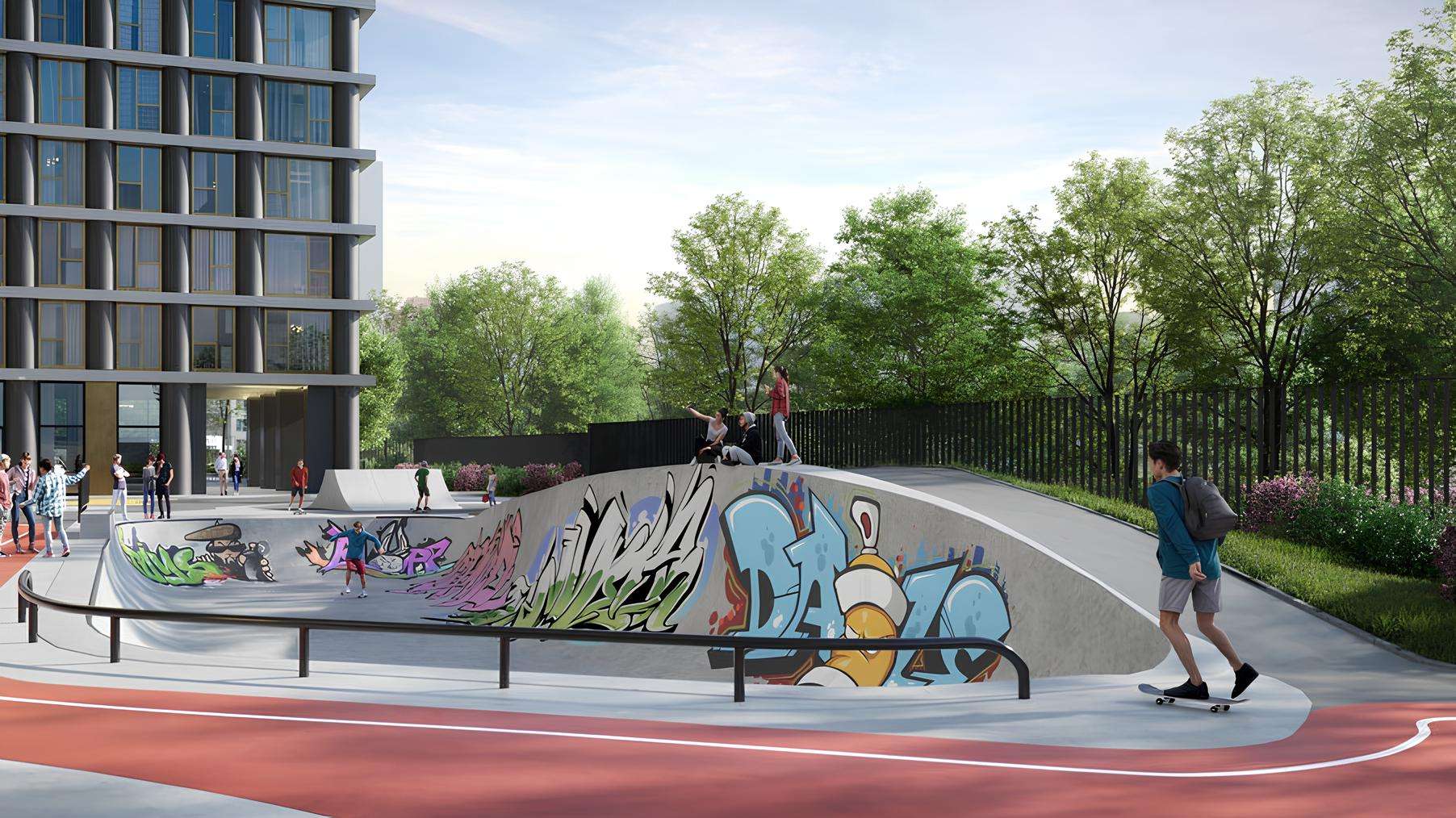 Приватный двор комплекса — это продолжение концепции комфортной жизни, созданное бюро Mecanoo. Территория полностью закрыта для машин, создавая безопасное и спокойное пространство для отдыха. Ландшафтный дизайн с обильным озеленением включает прогулочные и беговые дорожки, а также зоны для занятий спортом.