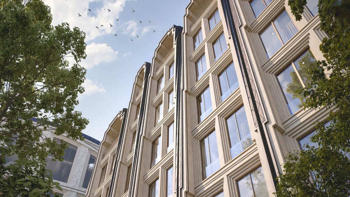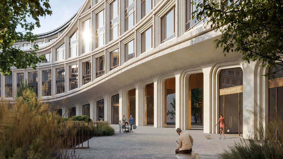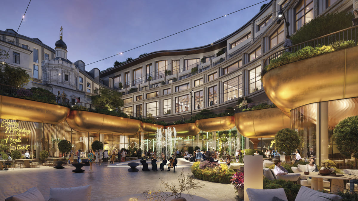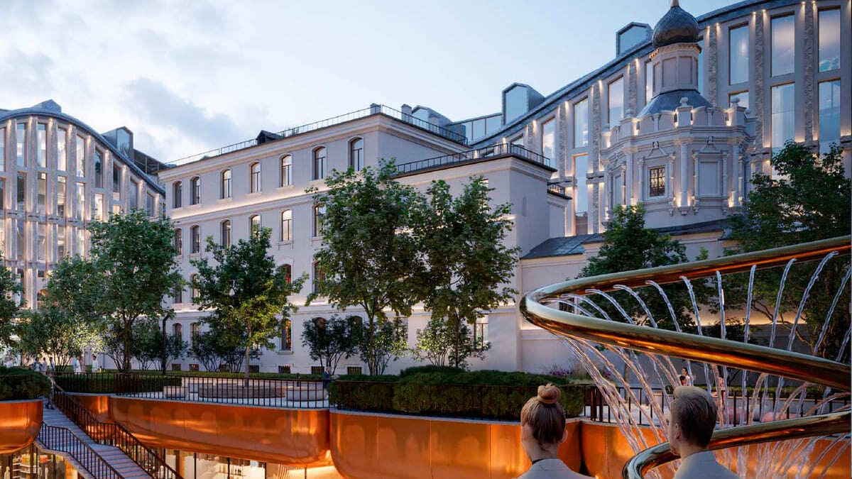 В составе комплекса – три корпуса, выполненные в классическом архитектурном стиле, разработанном бюро Heatherwick Studio совместно с Paris Classical Architecture.