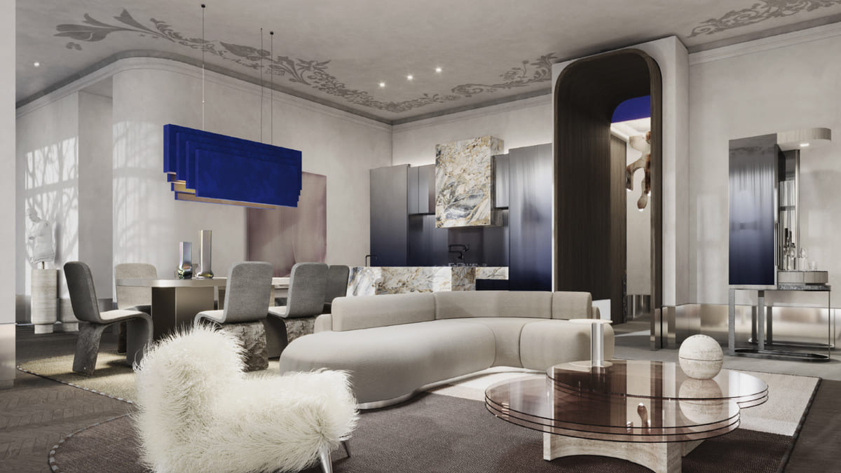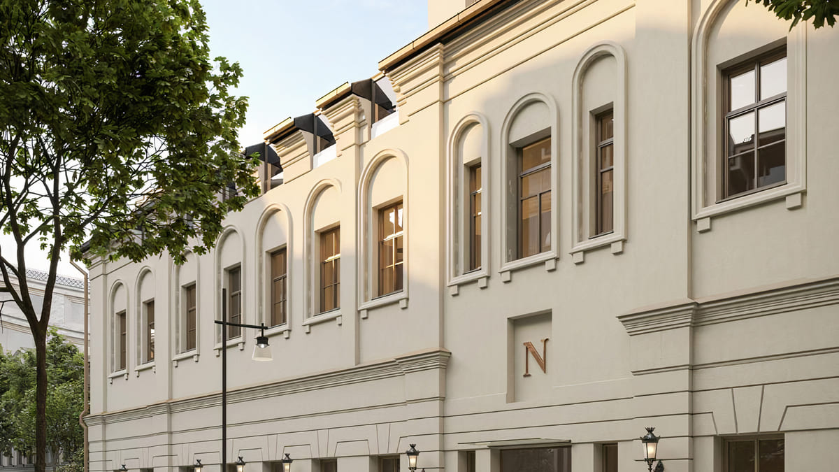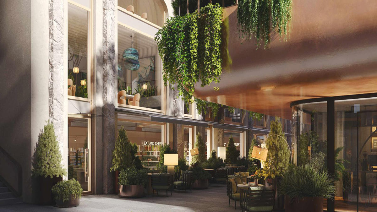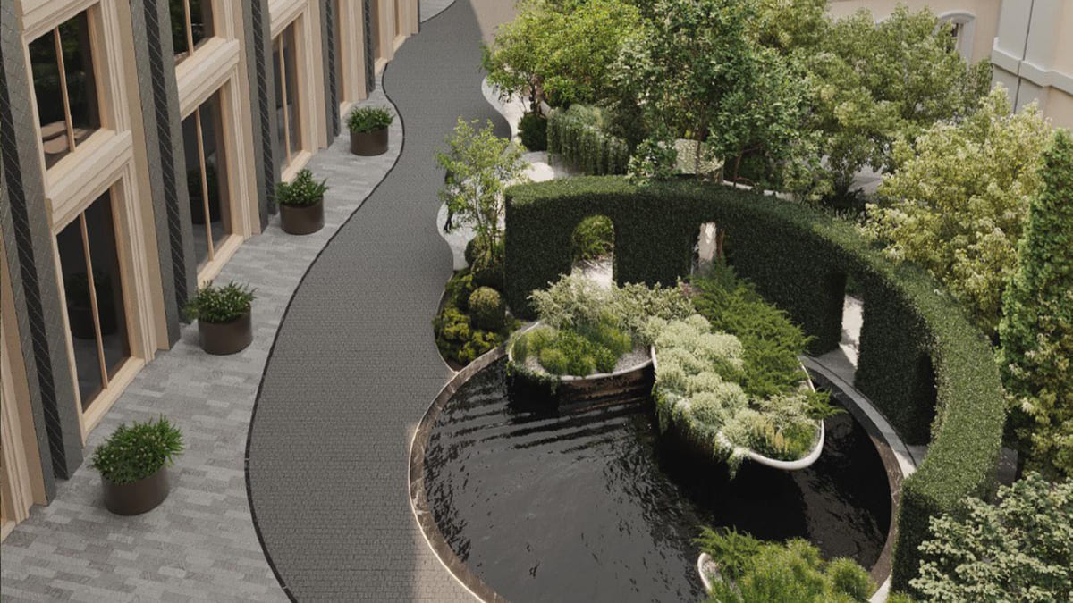 В составе комплекса – три корпуса, выполненные в классическом архитектурном стиле, разработанном бюро Heatherwick Studio совместно с Paris Classical Architecture.