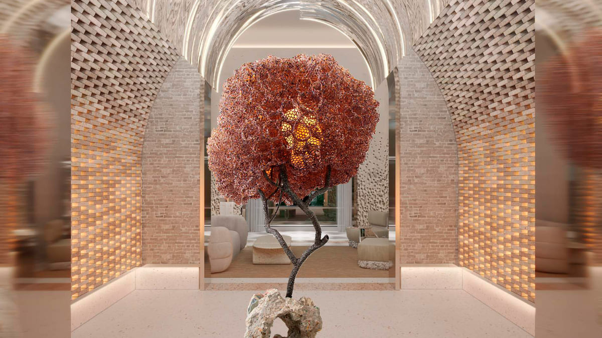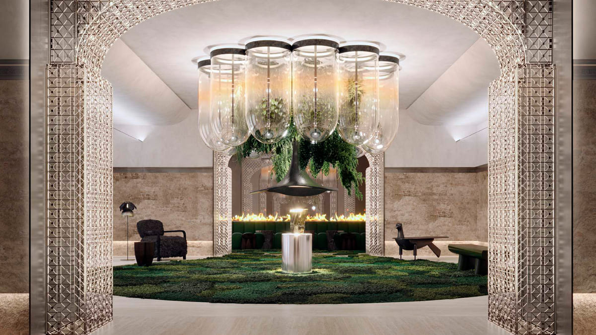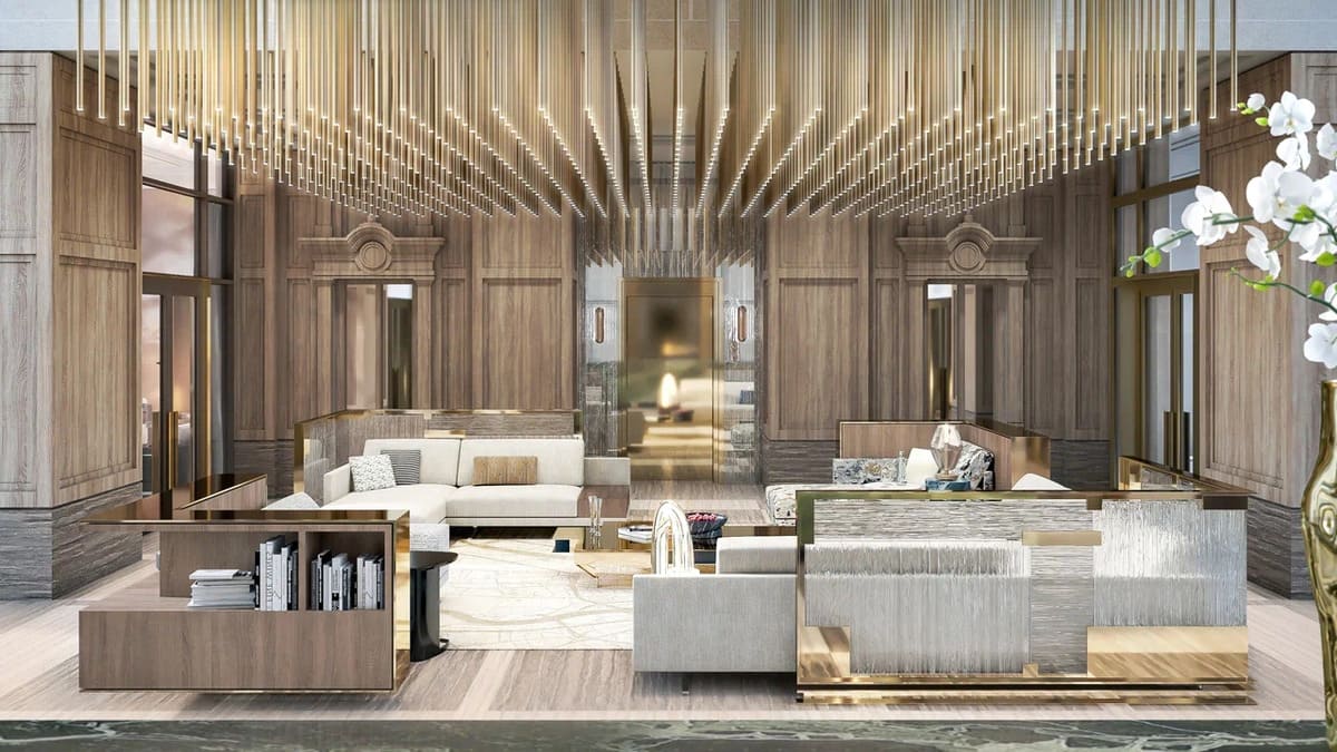 Дизайн лобби отражает стиль жизни будущих резидентов: грамотная планировка, сложная отделка, выразительные цветовые решения и внимание к деталям формируют атмосферу баланса и статуса.
