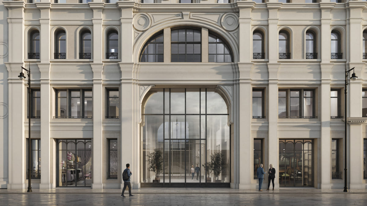 Классические фасады сочетаются с лёгкими и технологичными конструкциями, создавая гармоничное единство прошлого и настоящего.