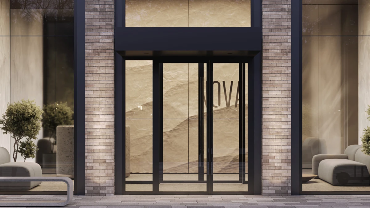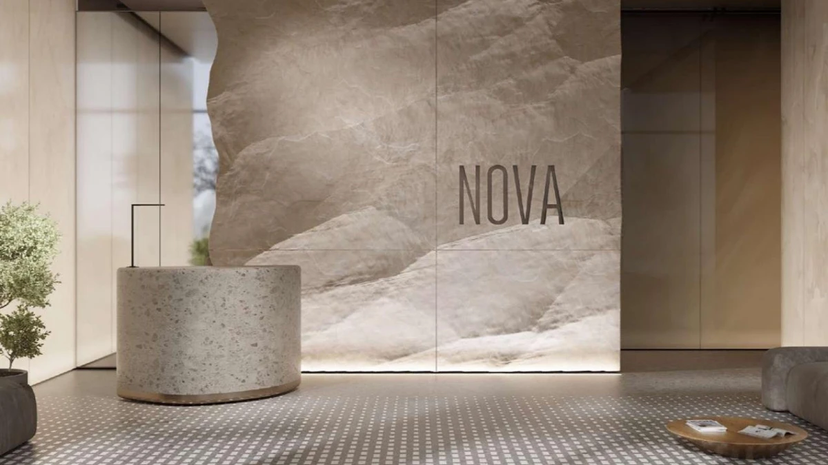 Лобби жилого комплекса NOVA разработаны студией UNK Interiors и отражают элегантность горных пейзажей в интерьере. Дизайн-концепция основана на благородной палитре оттенков и сочетании фактур, а в отделке используются натуральные материалы – камень, дерево и латунь.