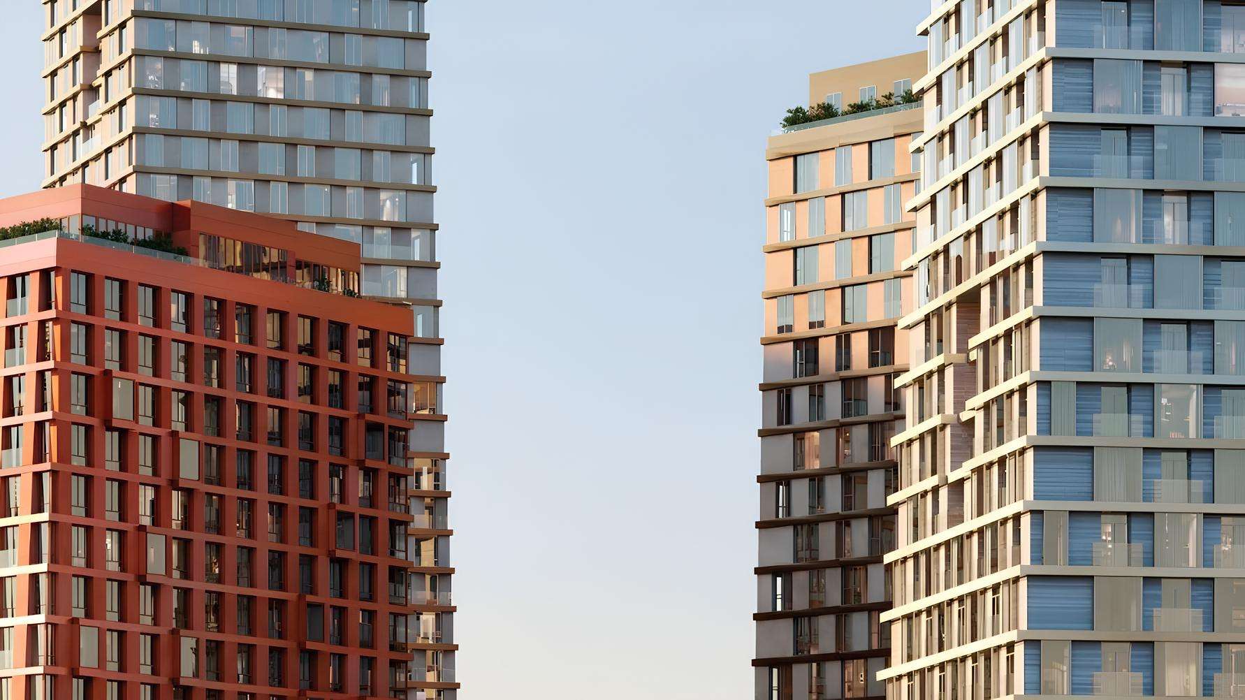 Большие джамбо-окна и балконы в каждой квартире обеспечивают обилие естественного света и визуальную связь с окружающим ландшафтом.