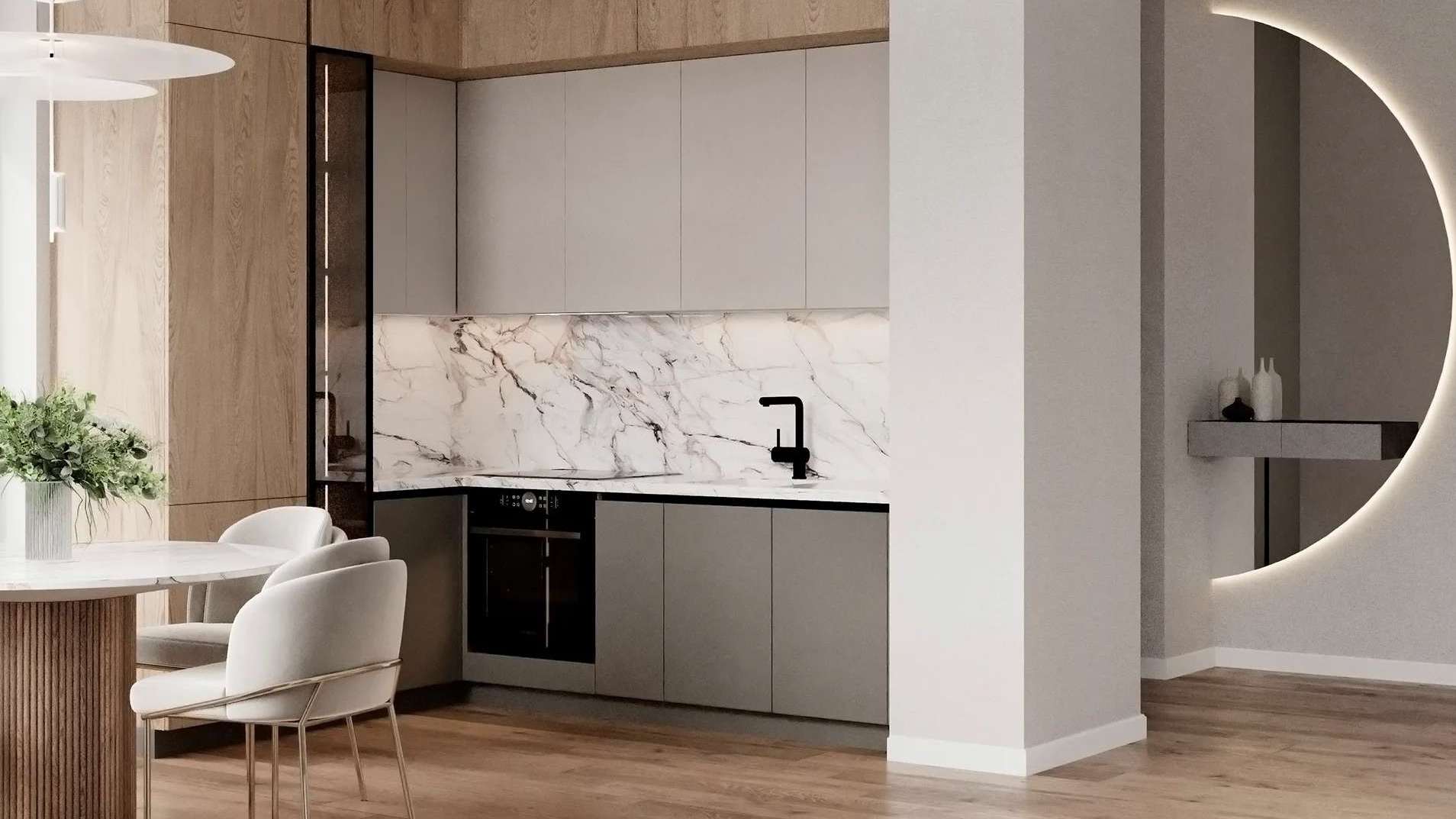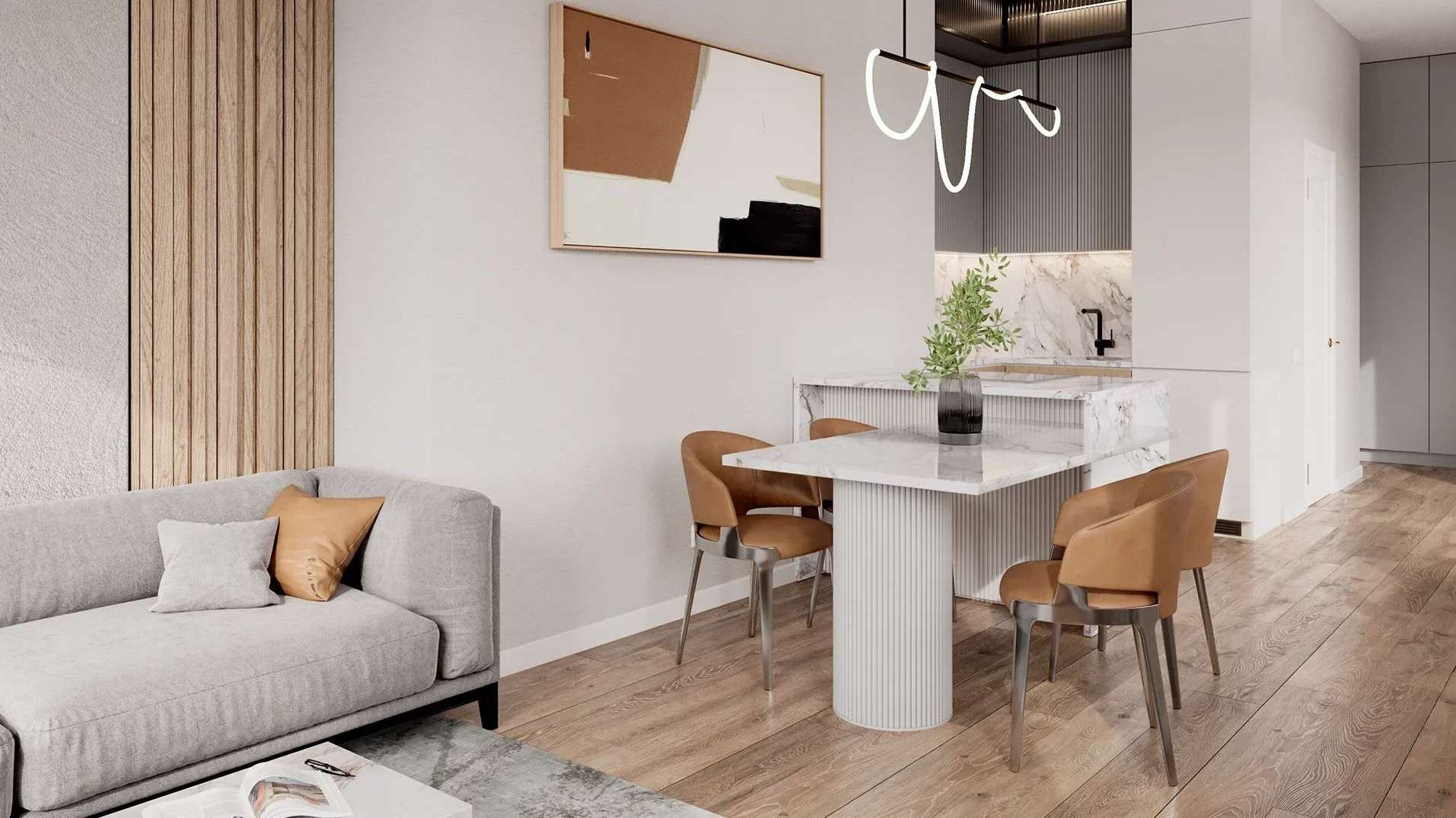 Дизайн общественных зон, включая величественные входные группы, также разработан архитекторами бюро KAMEN, что гарантирует безупречную эстетику и чувство стиля с первых шагов в дом. В парадном гранд-лобби создана уютная зона ожидания с комфортной мягкой мебелью и атмосферным биокамином, где можно с комфортом дождаться гостей или такси.