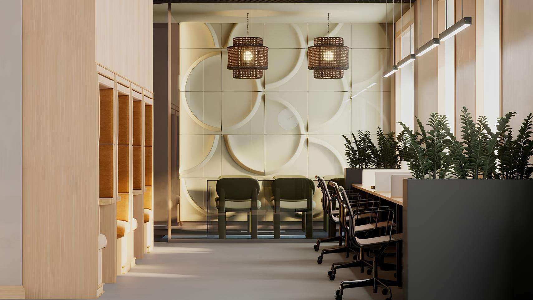 Пространство выполнено в спокойной, благородной палитре с акцентами на премиальные материалы и детали, настраивая на отдых сразу после рабочего дня. В каждом корпусе также есть собственные лобби-зоны, где предусмотрено место для хранения детских колясок и велосипедов, добавляя бытового удобства. Таким образом, входная группа — это не просто дверь в подъезд, а многофункциональное пространство, которое встречает жителей уютом и заботой.