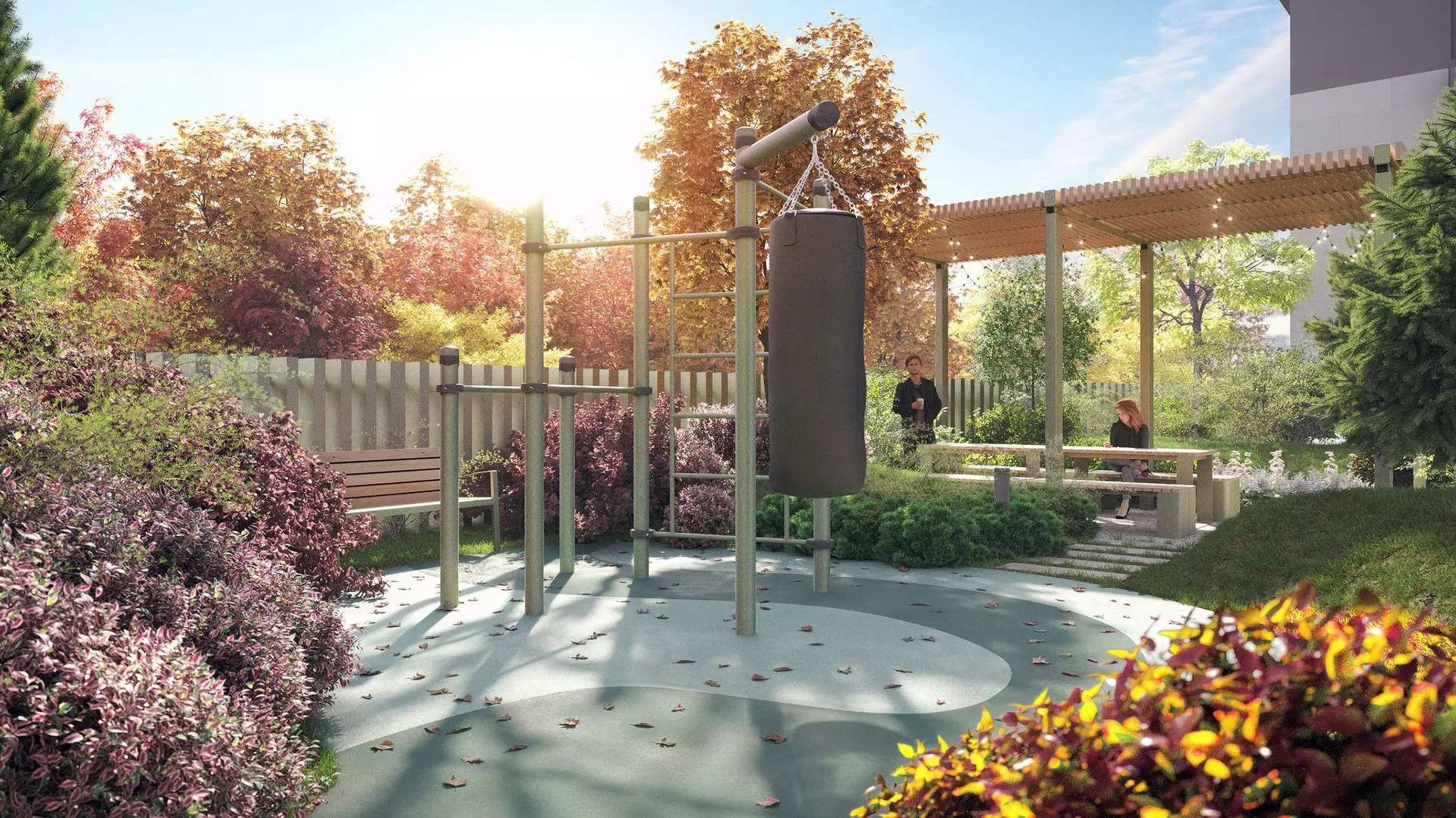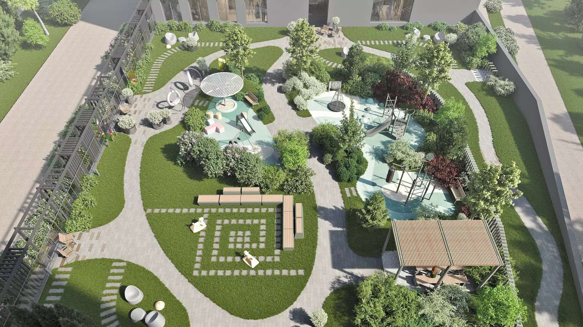 Здесь обустроены развивающие игровые площадки для детей разных возрастов и многофункциональные спортивные зоны для взрослых. Продуманное озеленение, парковая мебель и арт-объекты создают особенную атмосферу для релаксации. Во дворе найдется место для всех: тихие уголки для уединенного отдыха сменяются открытыми пространствами для активных игр и общения с соседями.