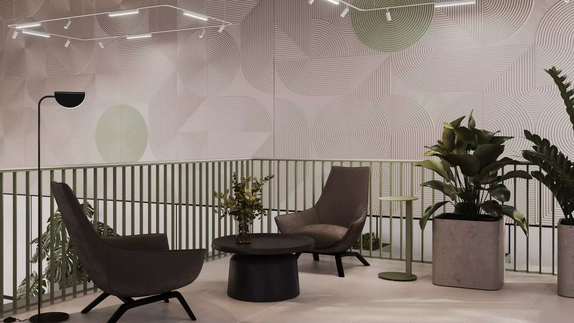 В отделке использованы современные и долговечные материалы, а мебель подобрана в стильной, гармоничной цветовой гамме. Для вашего комфорта здесь оборудованы уютные мягкие зоны ожидания. Круглосуточный консьерж-сервис всегда готов помочь с решением бытовых вопросов и обеспечить безопасность.