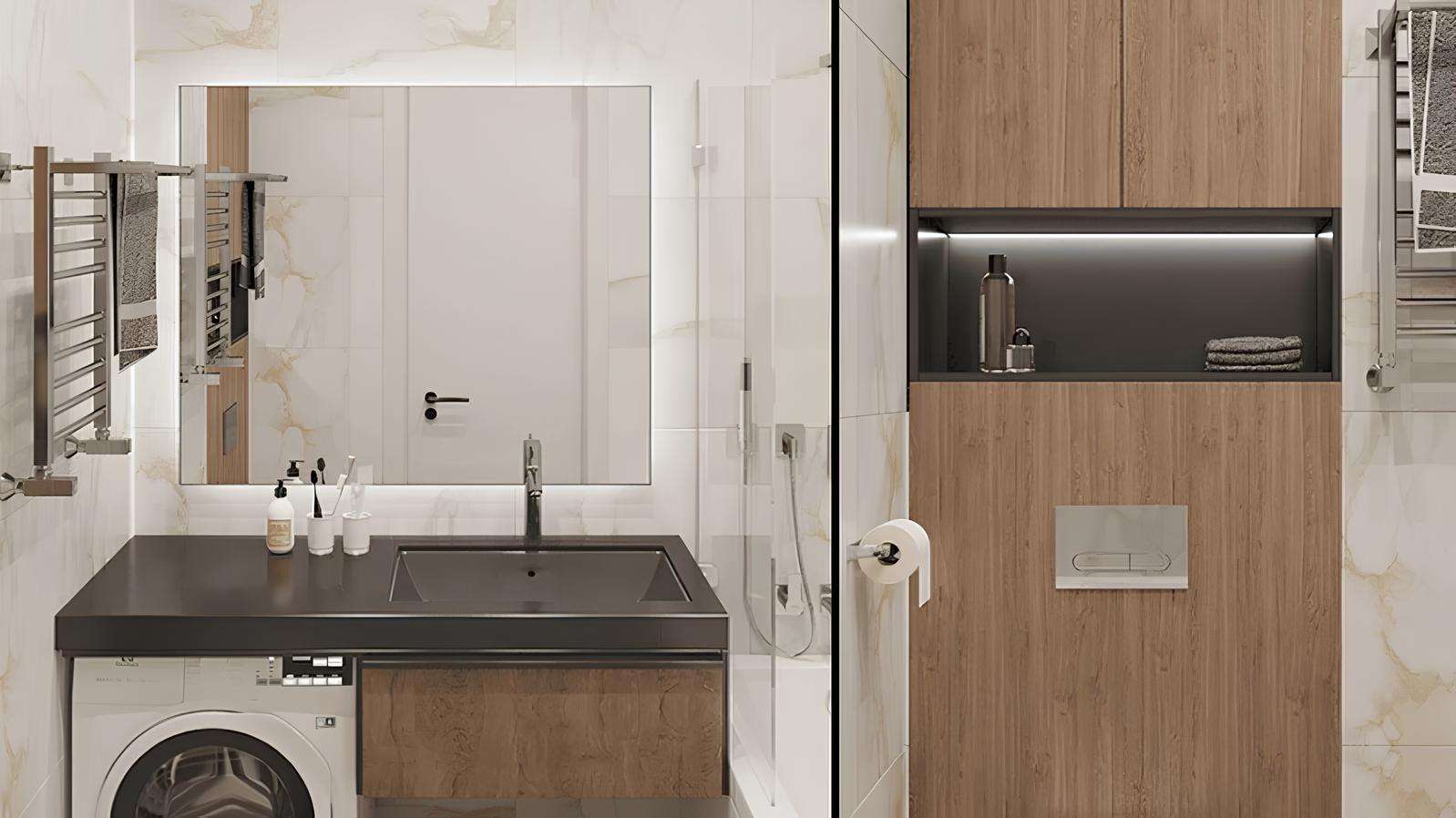 Пространства наполнены светом благодаря высоким потолкам до 3,1 метра и панорамным окнам, которые создают ощущение свободы и простора. Каждая деталь в апартаментах продумана для создания современного и комфортного жилья бизнес-класса.