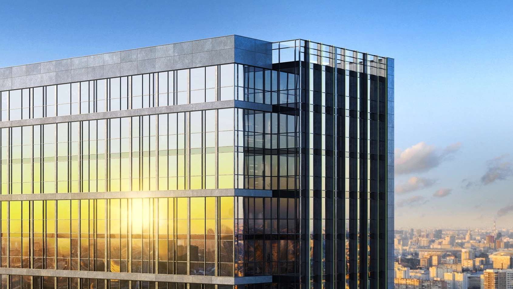 Динамичный силуэт достигается за счет переменной этажности, что позволяет комплексу гармонично вписаться в существующую городскую застройку. В вечернее время фасады подсвечиваются, создавая глубокий изумрудный свет и делая здание настоящим арт-объектом района.