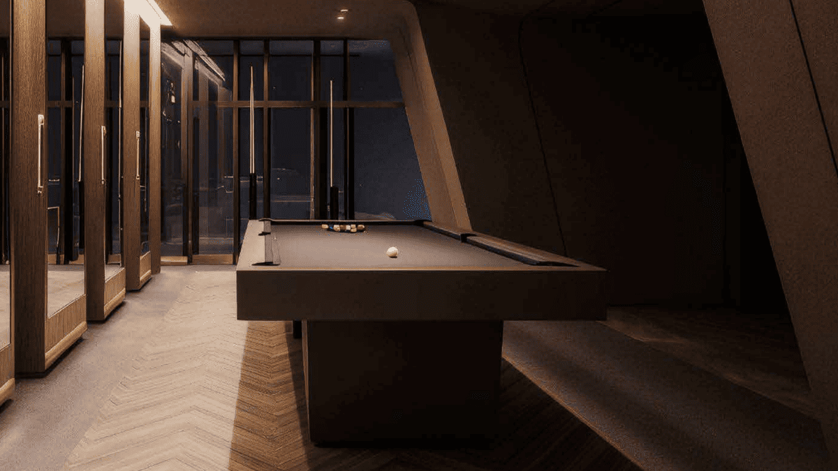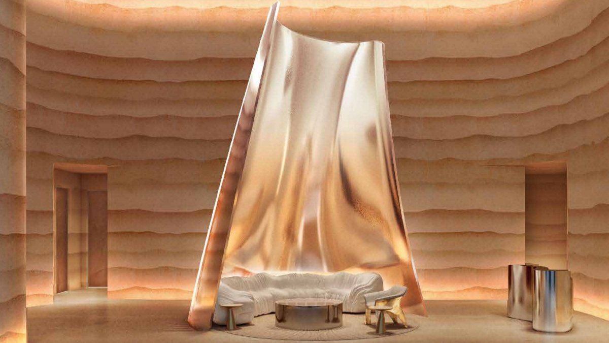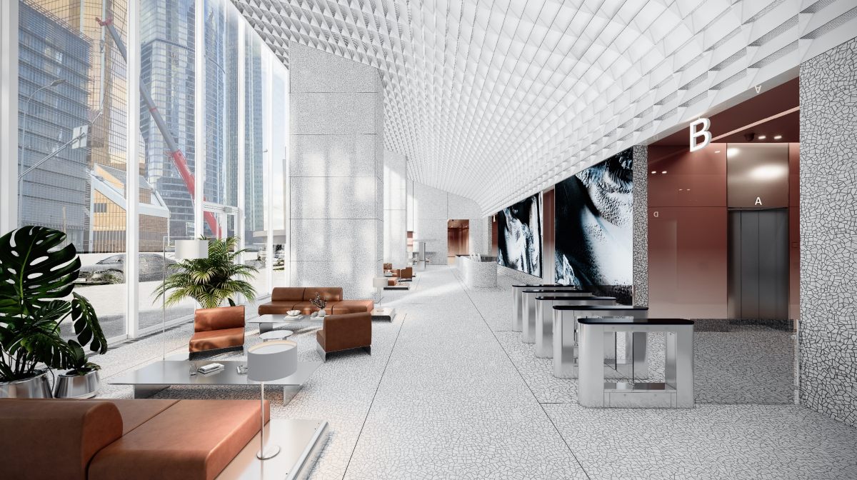 Футуристичный дизайн, натуральные материалы в отделке, продуманное освещение и выразительная геометрия пространства делают лобби не просто зоной прохода, а полноценной архитектурной достопримечательностью.