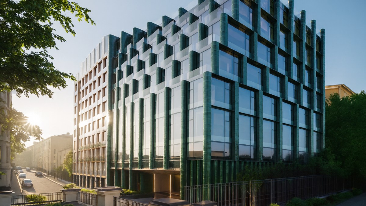 Проект впечатляет не только необычным трёхчастным фасадом, созданным из дорогих натуральных материалов, но и полноценной инфраструктурой в стиле Clubhouse.