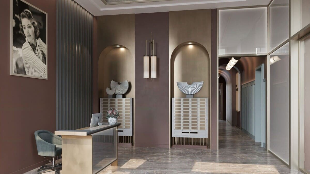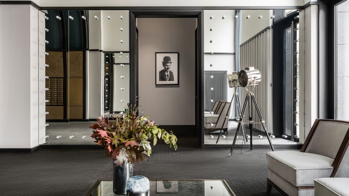 В лобби первых двух очередей – арт-деко в духе золотого Голливуда: портреты Грейс Келли, Чарли Чаплина и других легенд того времени.