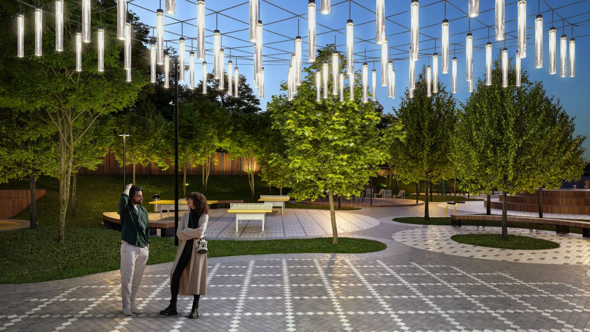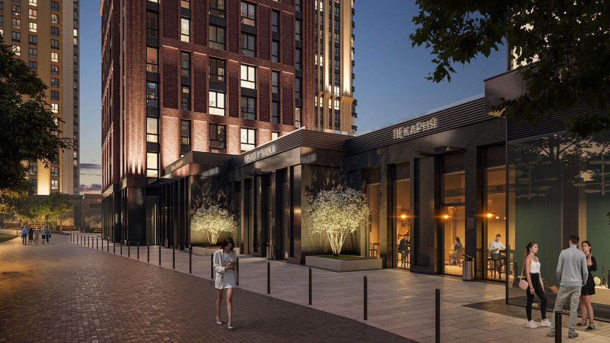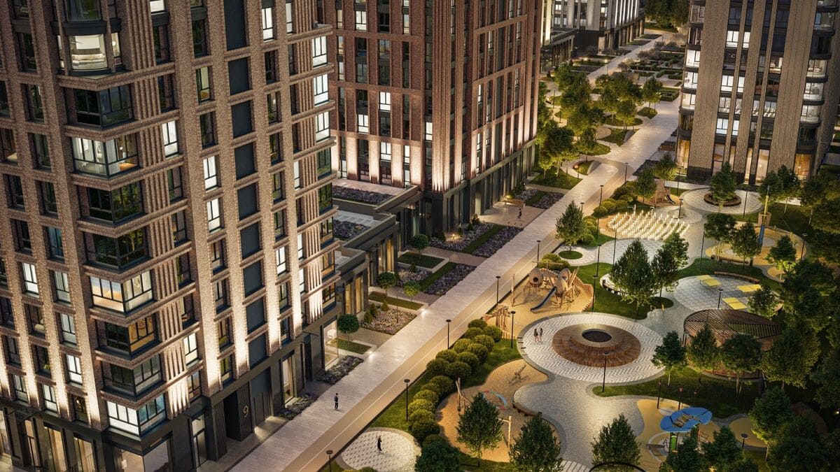 Комплекс занимает 4,6 га и сочетает архитектурную выразительность с ухоженными общественными пространствами.