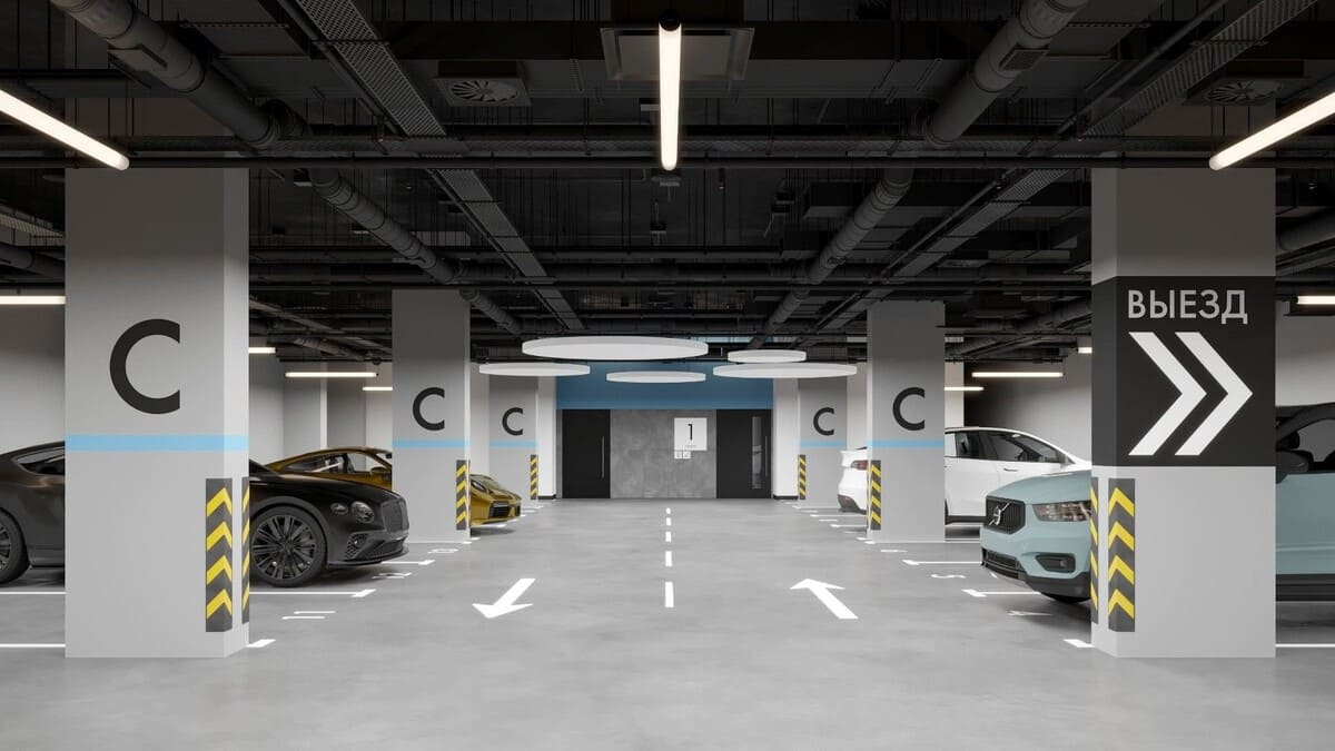 - Подземная парковка на 978 парковочных мест, оборудованная системой доступа по номерным знакам;