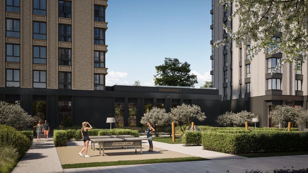Пространства для отдыха организованы на уровне дворов по уровню: это позволяет создать камерные зоны, где можно расслабиться в уединении, и более открытые – для активности.