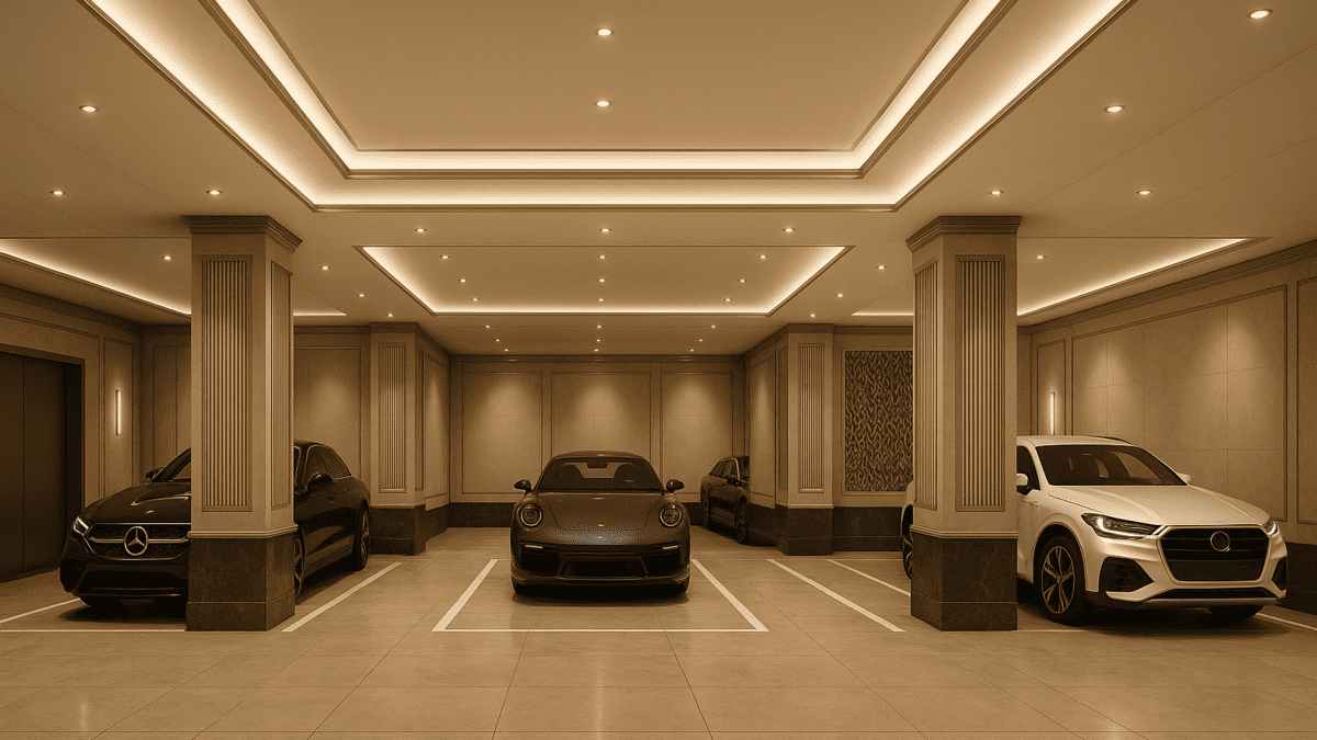 Pentagram оборудован подземным паркингом на шесть машино-мест и оснащён передовыми инженерными системами, обеспечивающими комфорт, безопасность и энергоэффективность проживания.