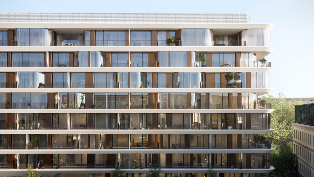 В доме – всего 76 уникальных квартир: от студий и двухуровневых лотов с патио до пентхаусов с террасами и дровяными каминами. Площади – от 113 до 403 м².
