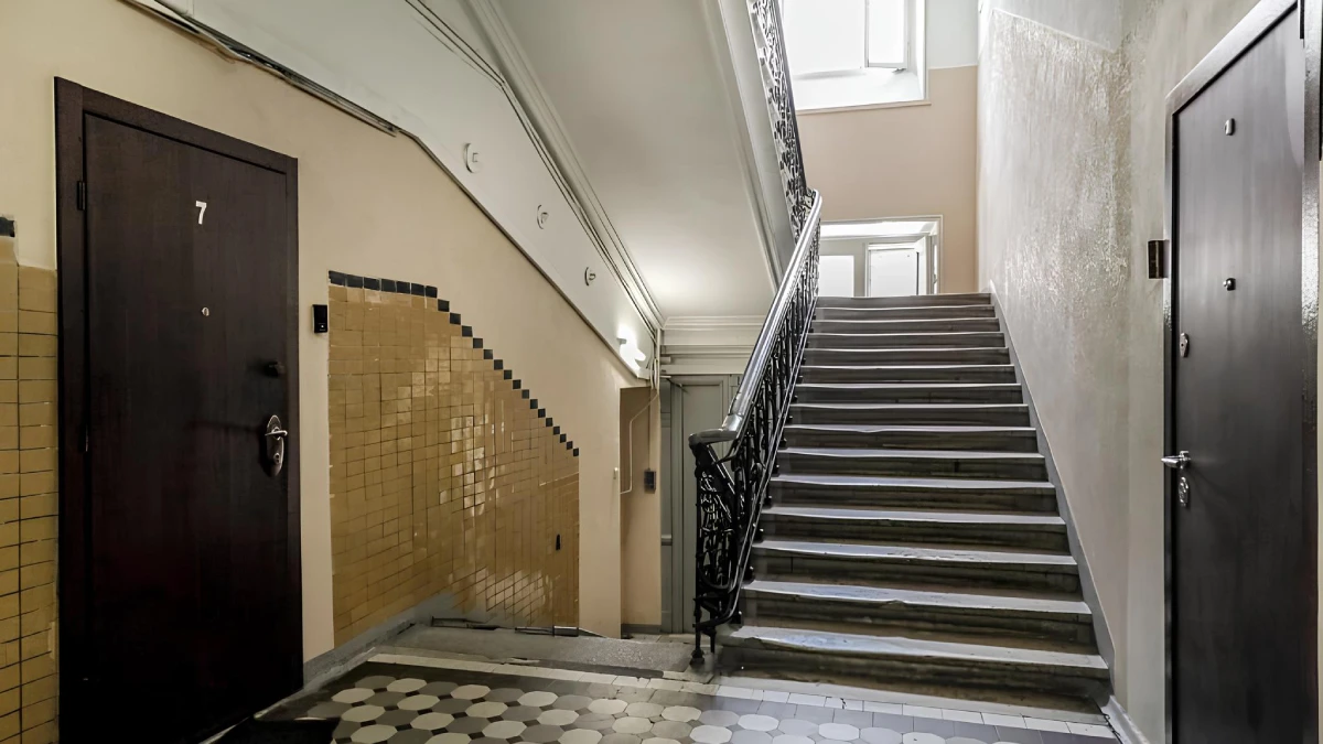 5-этажное здание выполнено из кирпича, а перекрытия из дерева, что характерно для исторической застройки и обеспечивает комфортный микроклимат в помещениях.
