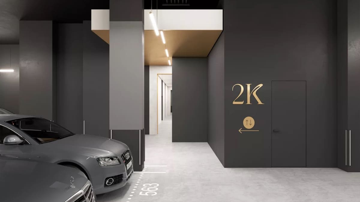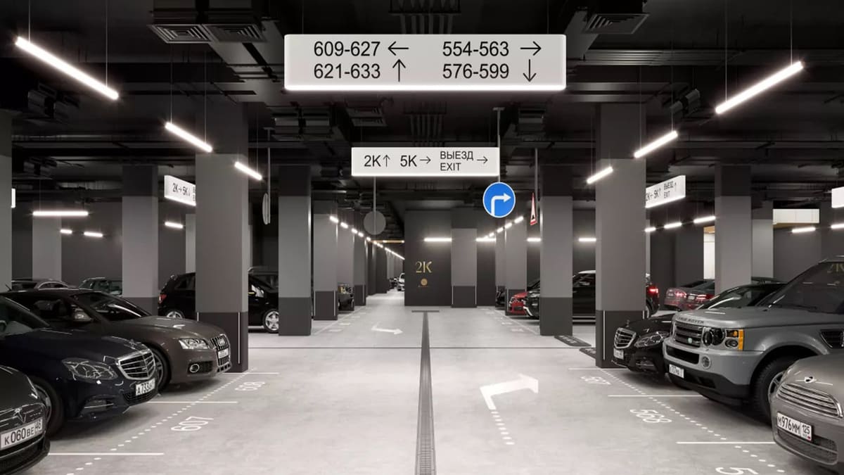 - Подземный паркинг на 864 места с зарядными станциями