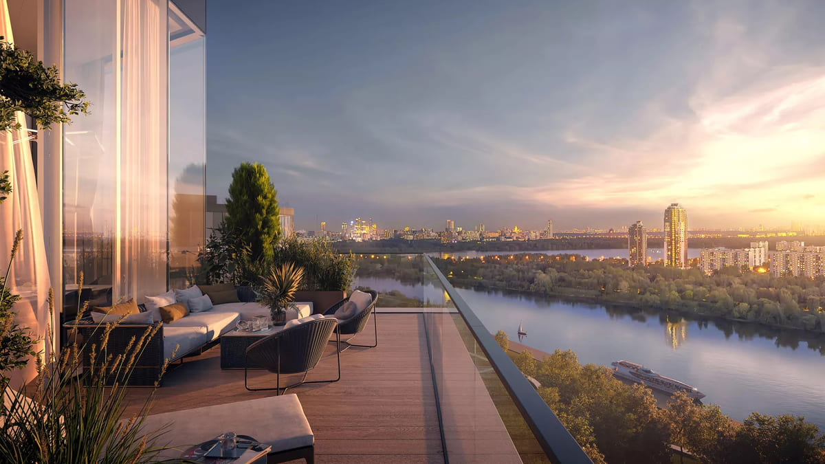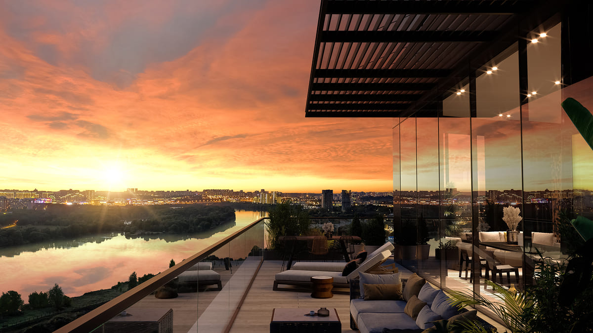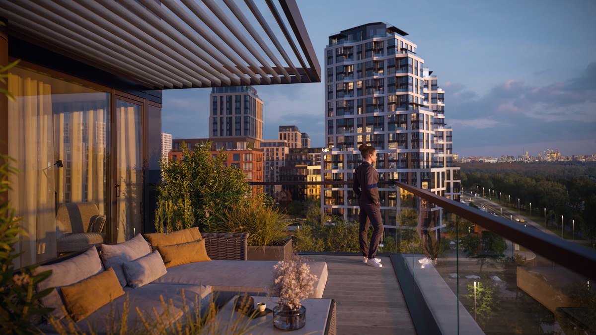 В проекте представлено более 120 форматов: от 40 до 368 м², включая студии, просторные квартиры с террасами, двухуровневые лоты и пентхаусы с панорамными видами.