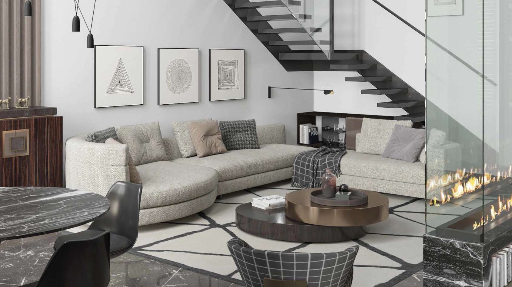 Мебель и декоративные элементы выдержаны в спокойных, сдержанных тонах, что способствует созданию спокойной и элегантной обстановки. Для комфортного ожидания и неформальных встреч жителей в холлах оборудованы уютные лаунж-зоны. Каждая деталь, от дизайнерских светильников до качества отделки, подчеркивает премиальный статус жилого комплекса.