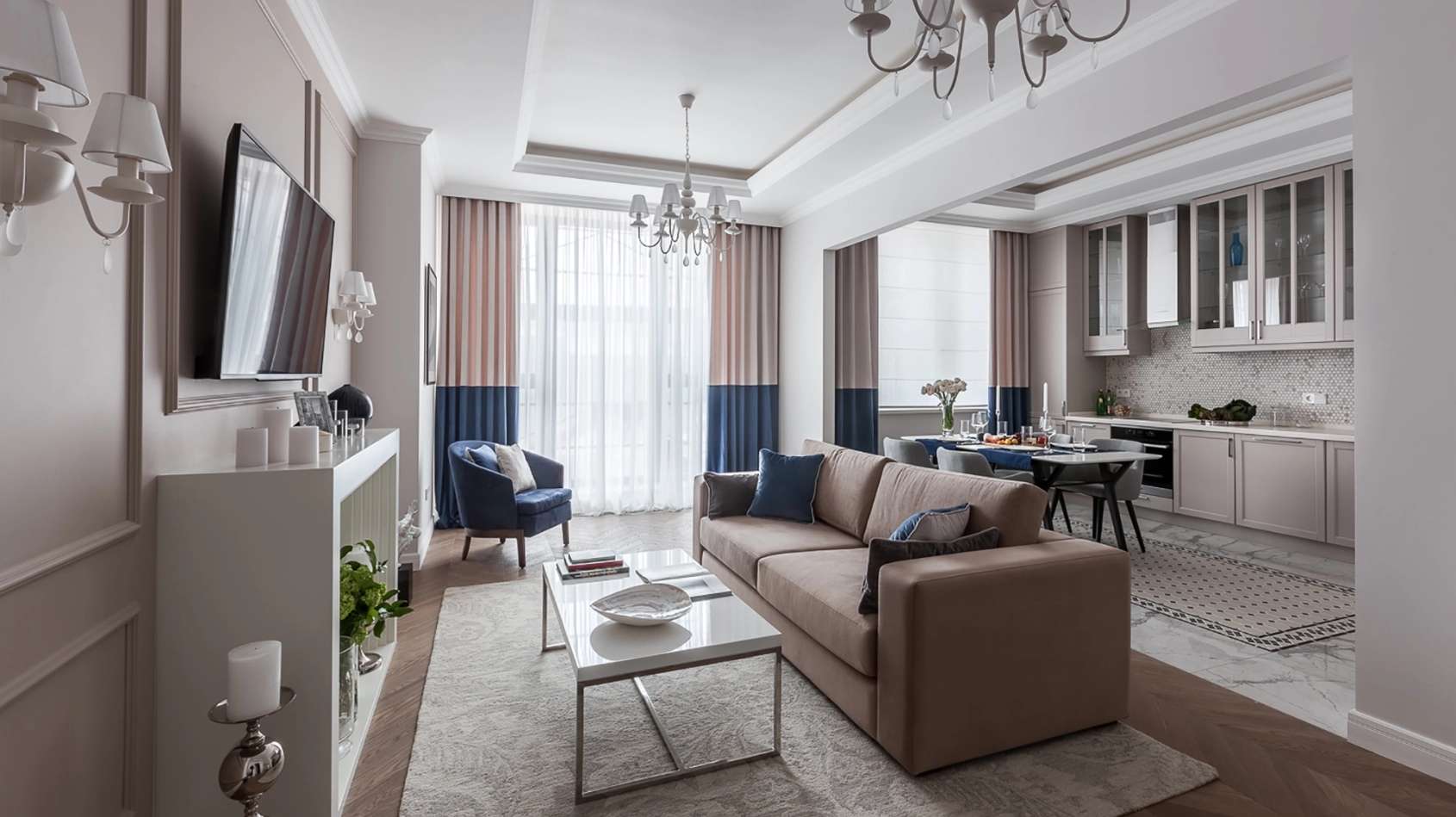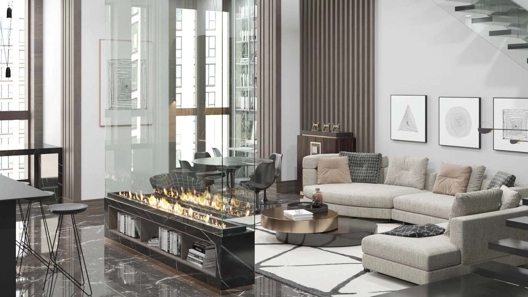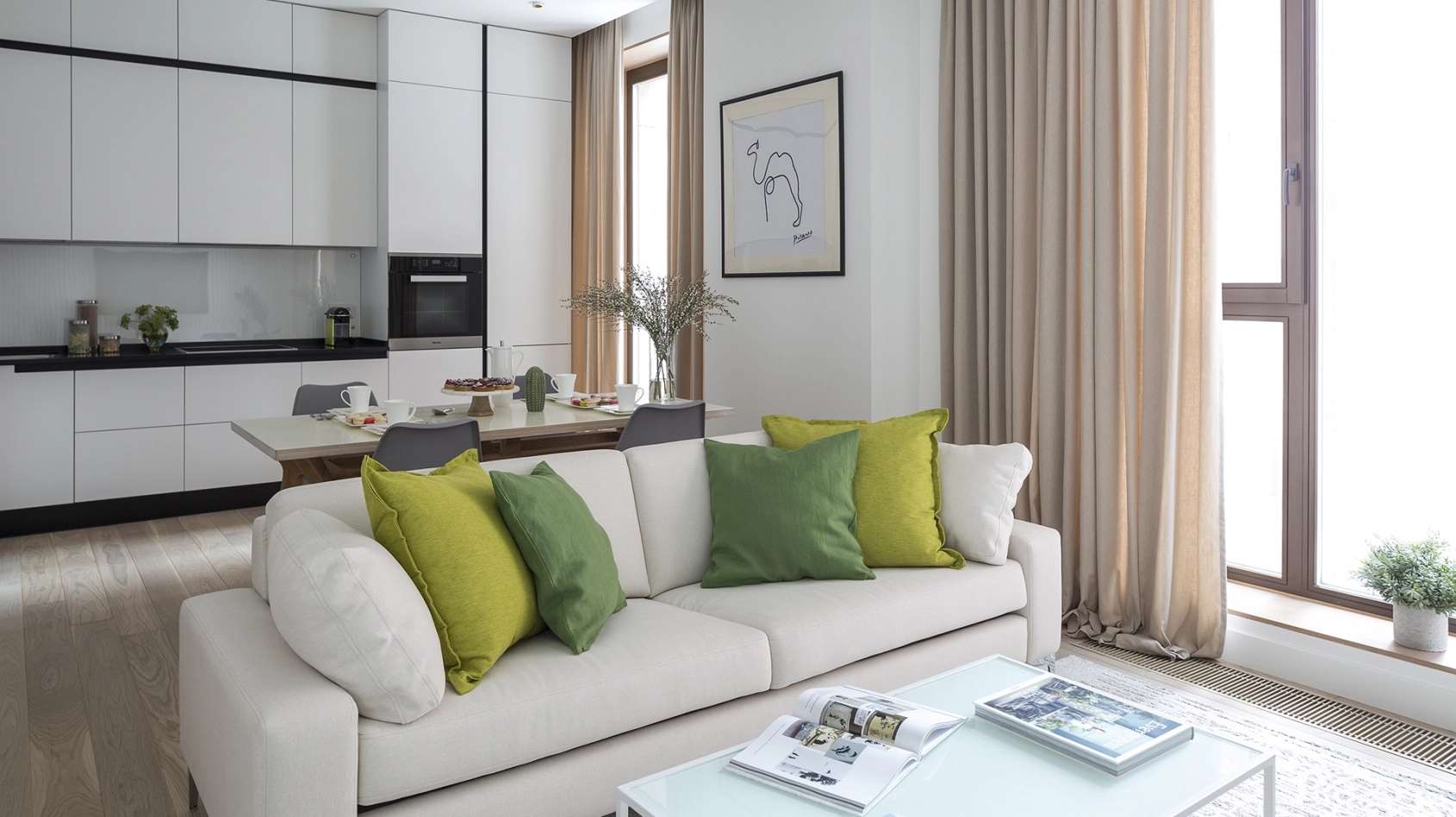 Планировки отличаются продуманной эргономикой: здесь есть и изолированные комнаты, и свободные пространства для индивидуального зонирования. Во многих квартирах выполнено панорамное остекление «в пол», наполняющее интерьеры естественным светом и открывающее великолепные виды.