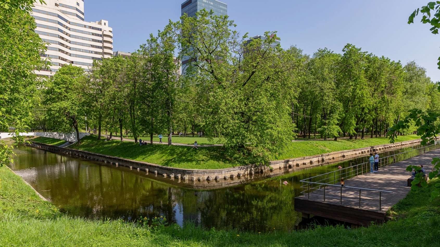Внутренние дворы закрыты для проезда постороннего транспорта и благоустроены по авторскому ландшафтному проекту, что создает ощущение приватного парка. Рядом с домом расположены крупные природные зоны — парк «Красная Пресня» и каскад Красногвардейских прудов. Благодаря расположению в ЦАО, отсюда легко добраться до Москва-Сити, Садового кольца и ТТК.