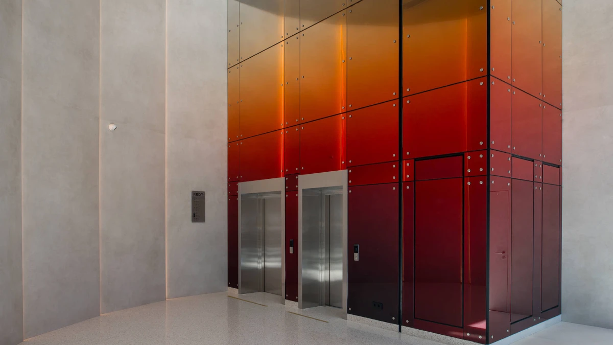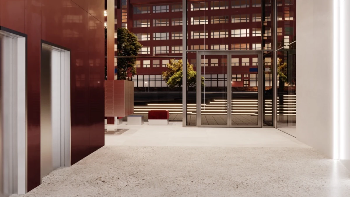 Интерьеры, разработанные дизайнером Сабин Марселис, сочетают минимализм, выразительные материалы и работу со светом, превращая входные группы в стильное продолжение архитектуры небоскрёба.