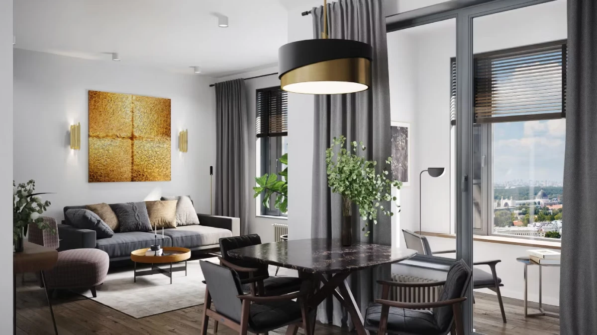 Квартиры в ЖК «Режиссёр» отличаются продуманными планировками с просторными кухнями-гостиными, мастер-спальнями, гардеробными и потолками высотой от 3,2 м до 6,7 м. Площадь квартир варьируется от 36,6 м² до 135,8 м².