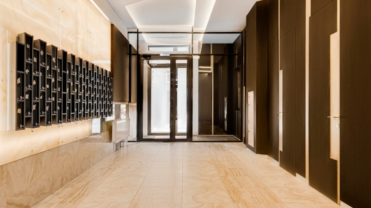 Дизайн общественных пространств разработан международной архитектурно-проектной мастерской JTA Architecture. Интерьеры лобби, холлов и лестничных маршей выполнены в элегантном современном стиле: натуральные материалы, продуманное освещение, выразительные акценты и атмосфера приватного клуба.