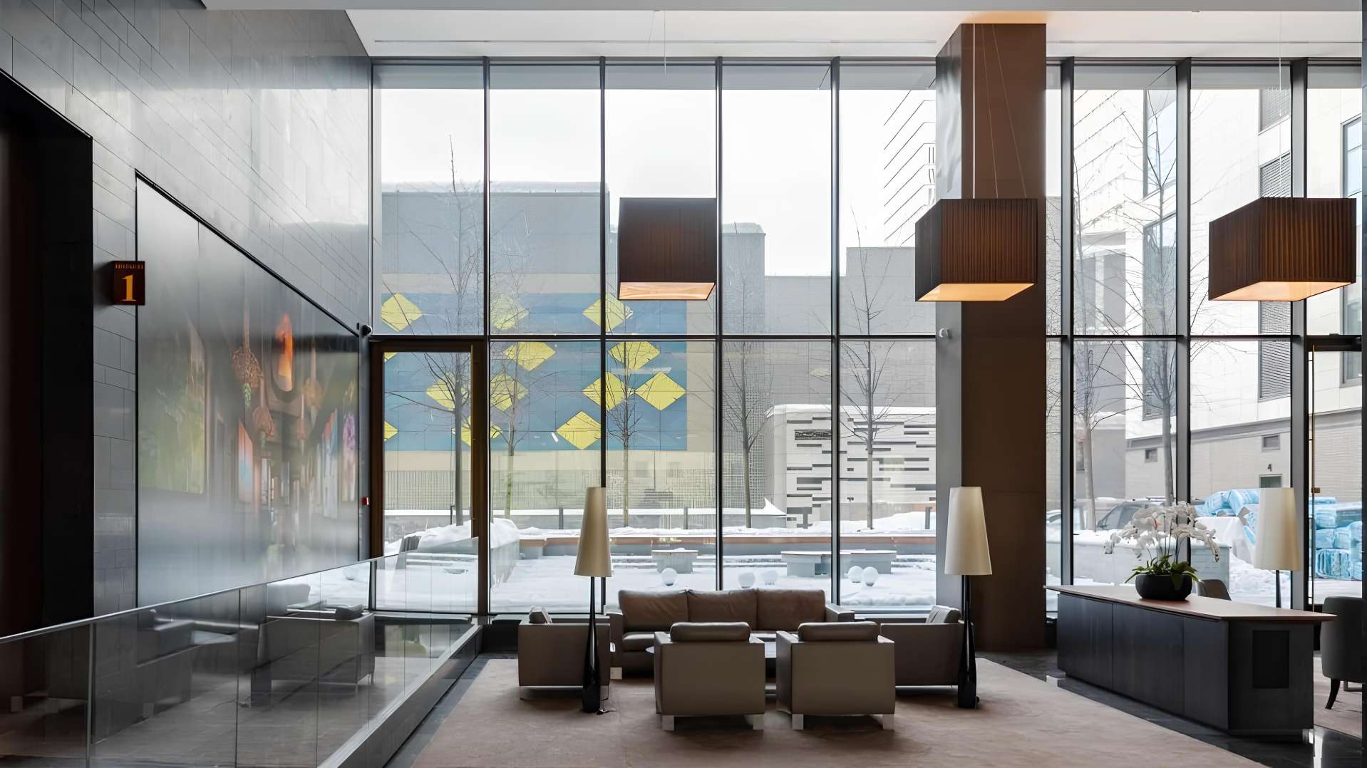 Зона ресепшн и комфортная лаунж-зона с мягкой мебелью создают атмосферу дорогого отеля, где можно приятно провести время в ожидании или за чтением.