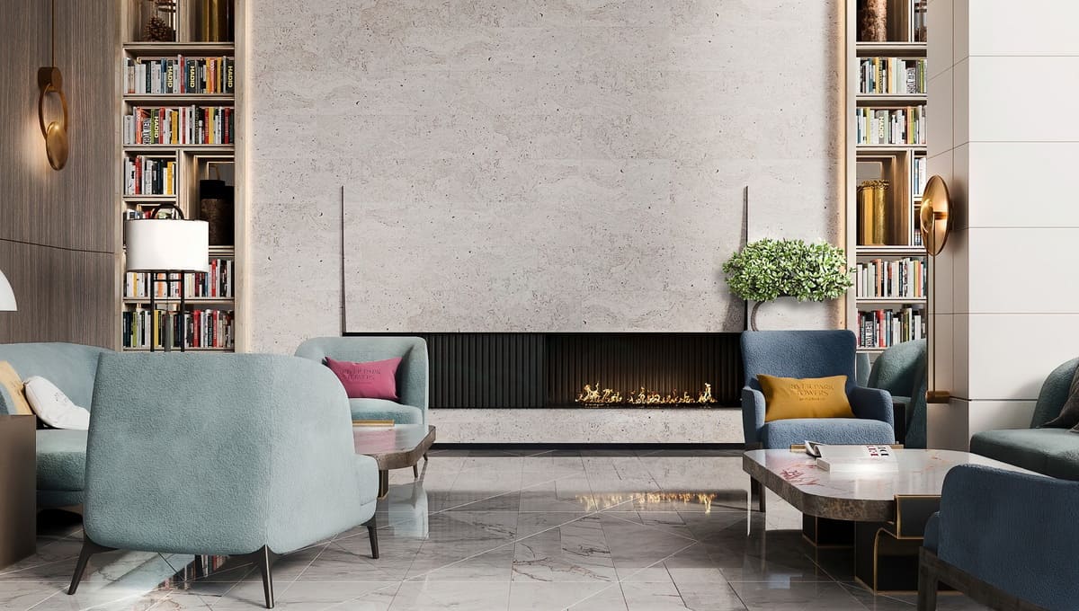В каждом корпусе есть библиотека с камином, зона ожидания, ресепшен и уютные мягкие лаунжи. Работает круглосуточный консьерж-сервис 24/7, доступный для резидентов и их гостей.