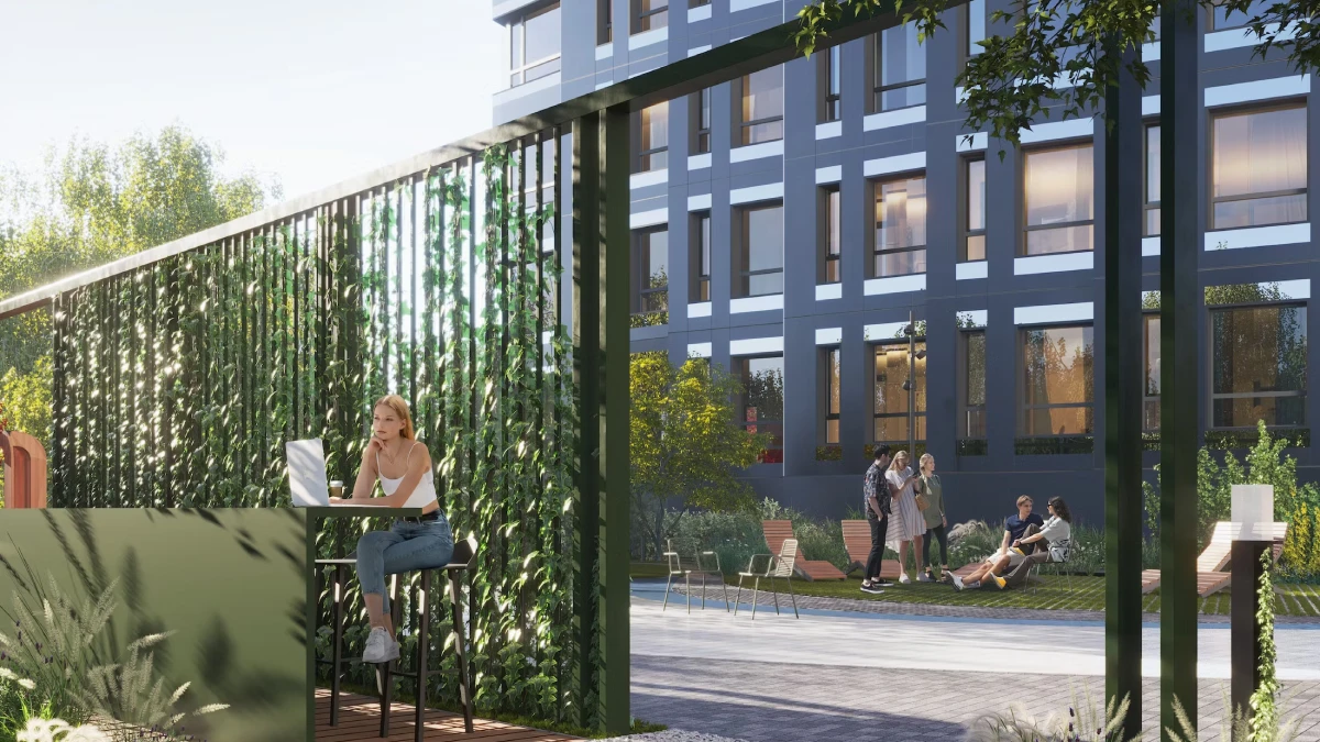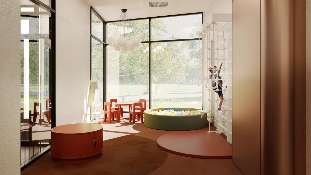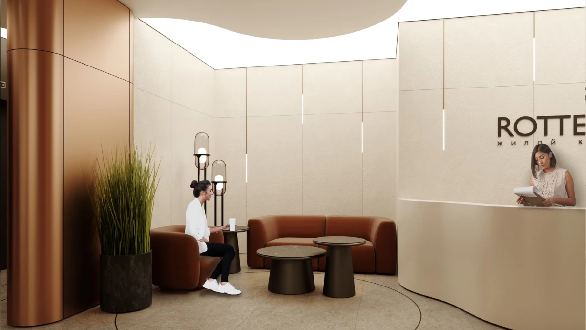 Концепция комплекса вдохновлена европейским отношением к жизни, где важен баланс между работой и личным временем. Поэтому в холле предусмотрен коворкинг и игровая комната.