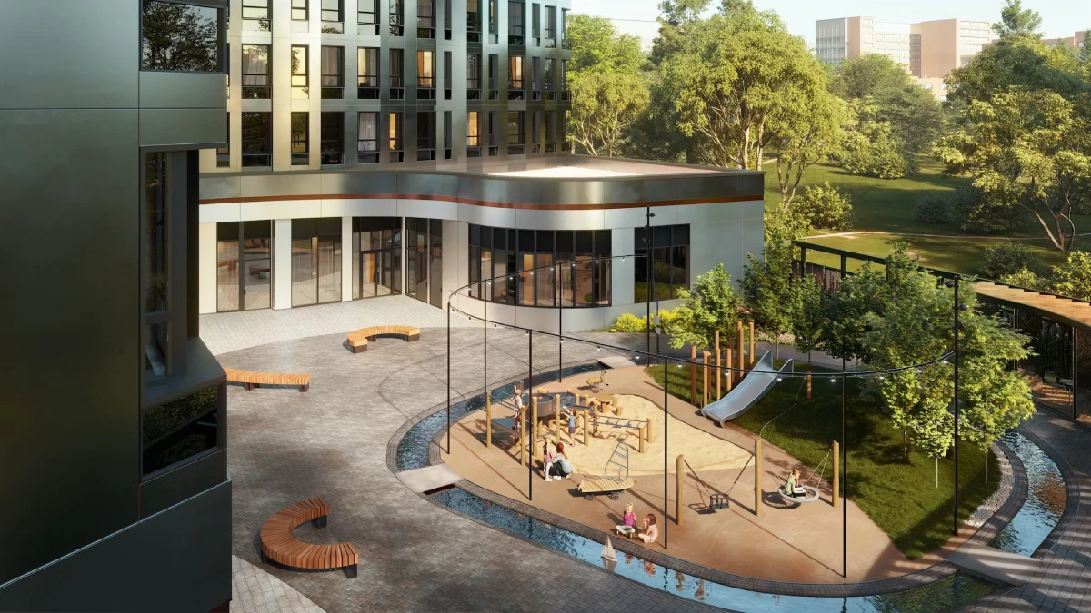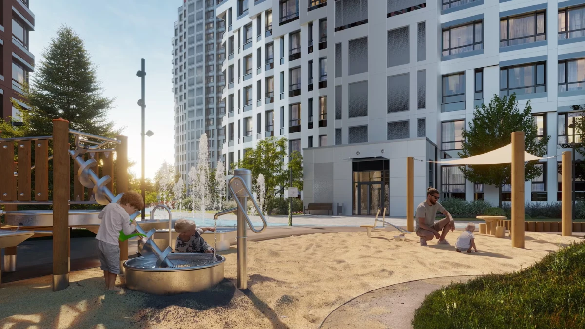 Придомовые пространства ЖК «Rotterdam» спроектированы ландшафтным бюро «Утро». В Северной части предусмотрен камерный закрытый двор: здесь –искусственный ручей, детская площадка для малышей, терраса-пергола с навесом и подогревом зимой. В Южной части – открытoе благоустроенное пространство между корпусами: сухой фонтан, детская площадка, уличный коворкинг, площадка для йоги, шезлонги для отдыха, столы для настольного тенниса – каждый найдёт занятие по душе.