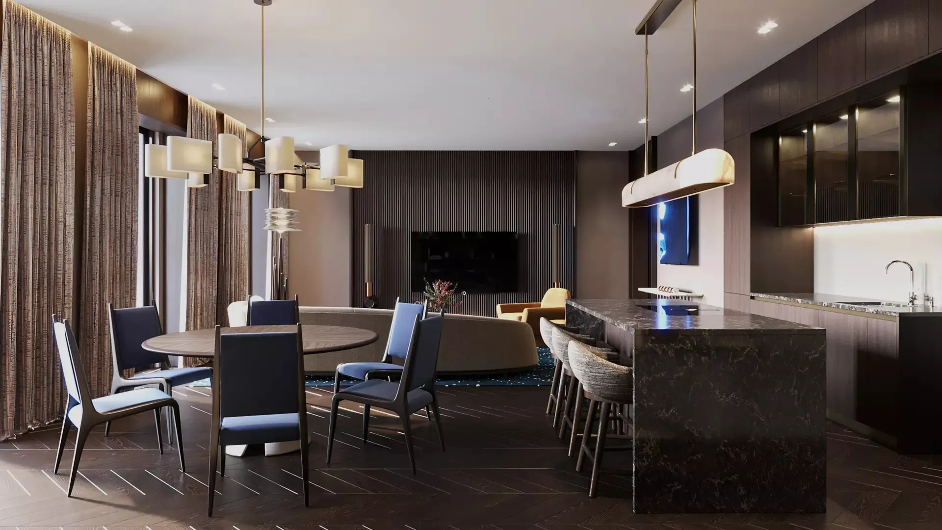 На первых этажах домов разместятся премиальные торговые галереи с модными бутиками, рестораны, кофейни и спа-салоны. Внутри комплекса для резидентов созданы роскошные общественные пространства: гранд-лобби, дизайнерская гостиная с баром и шеф-китчен, а также клубные зоны для работы и отдыха.