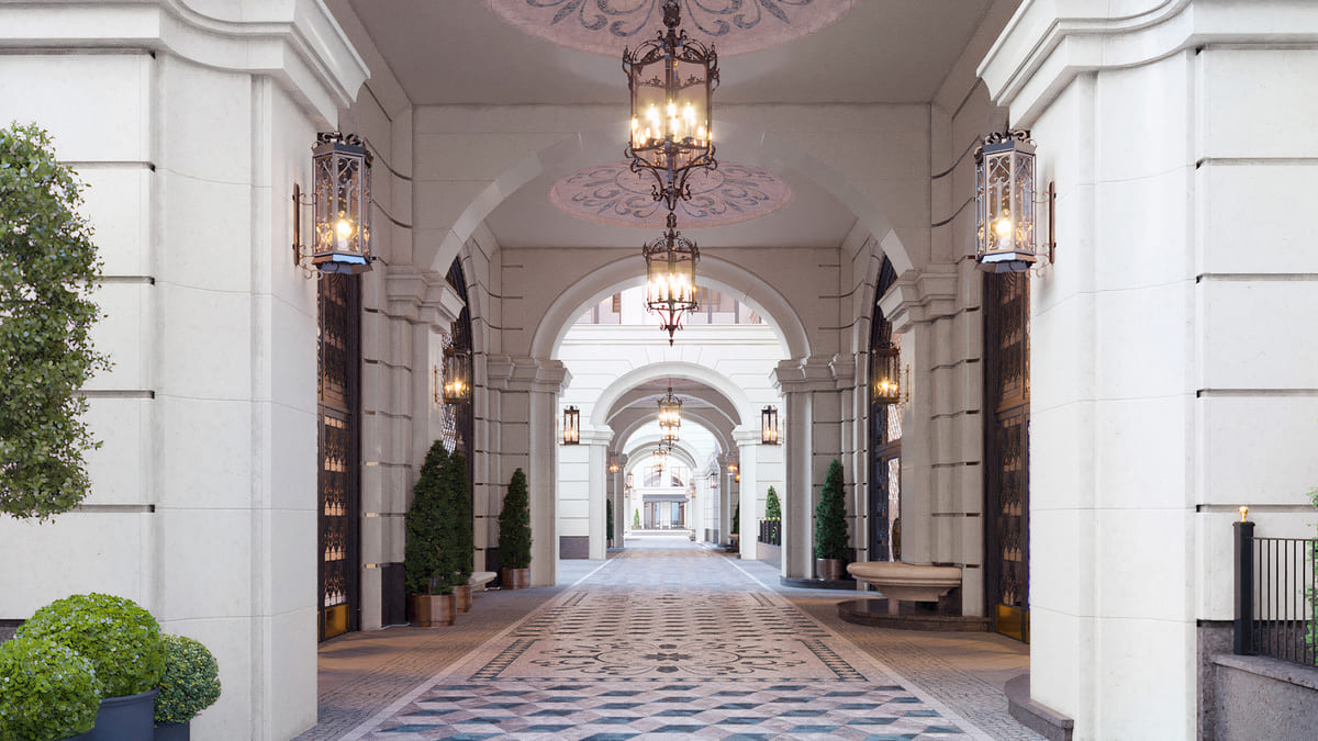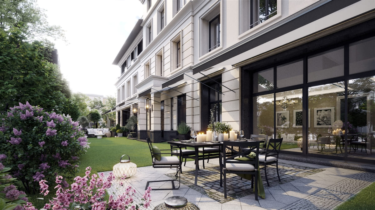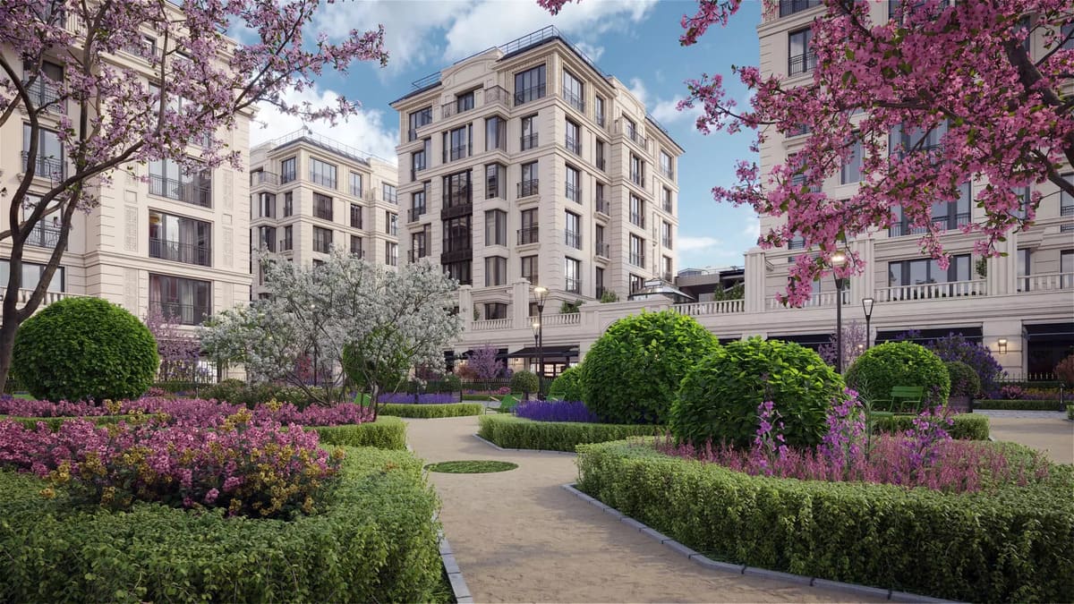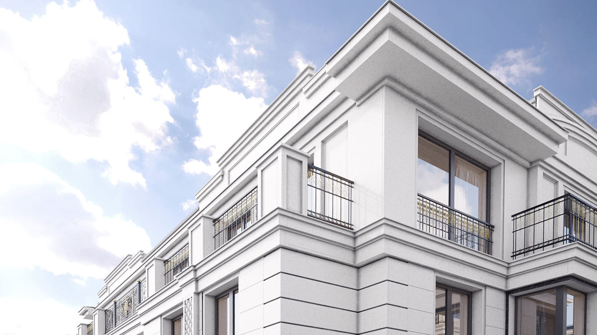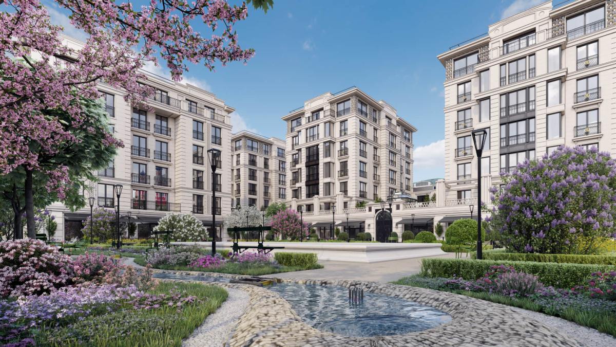 Каждый из 11 особняков выполнен в авторской архитектуре с классическими пропорциями и элегантными фасадами из светлого натурального камня, что подчеркивает респектабельность и статус проекта.
