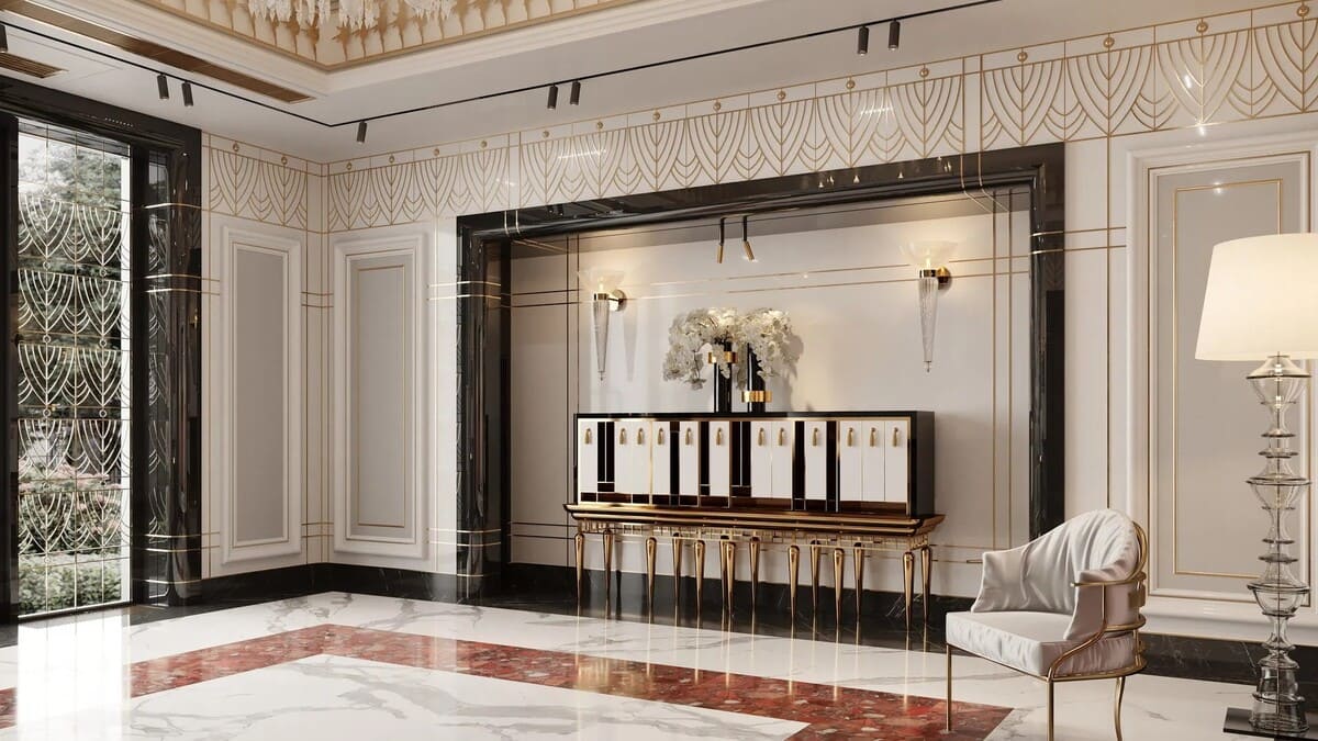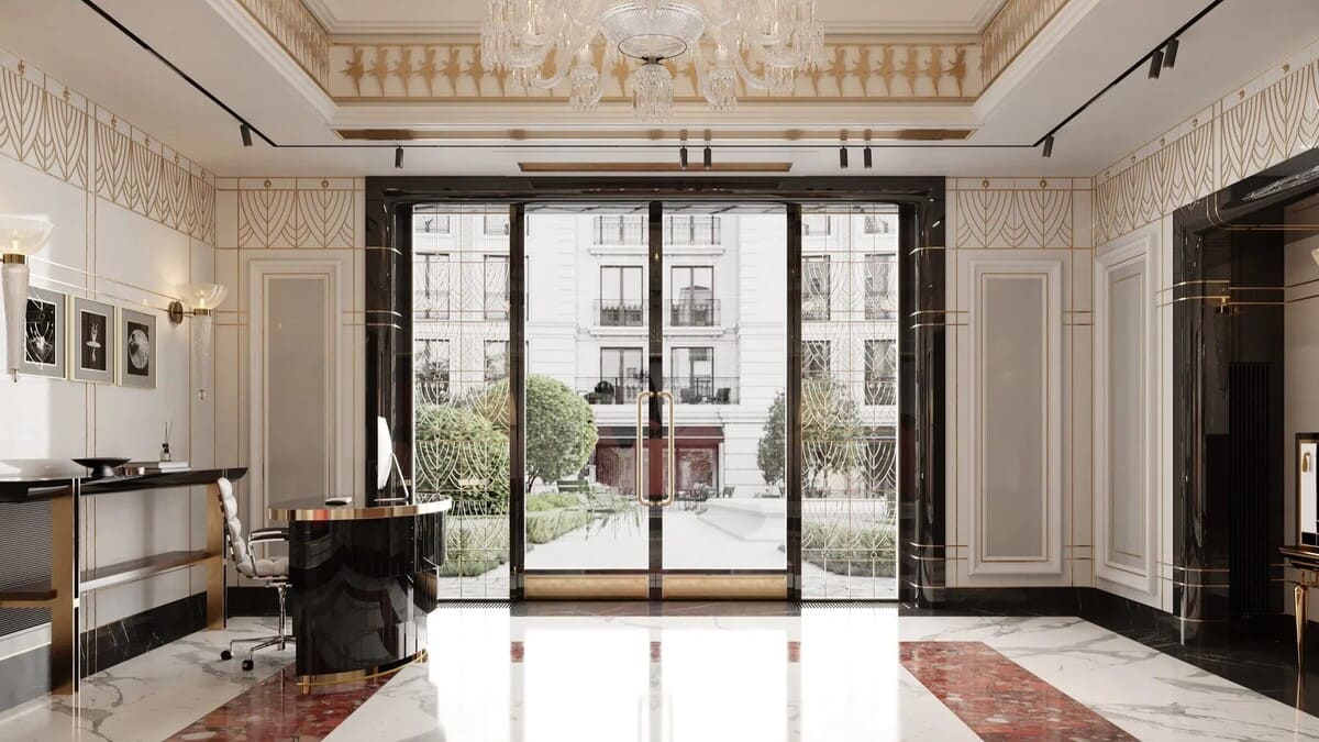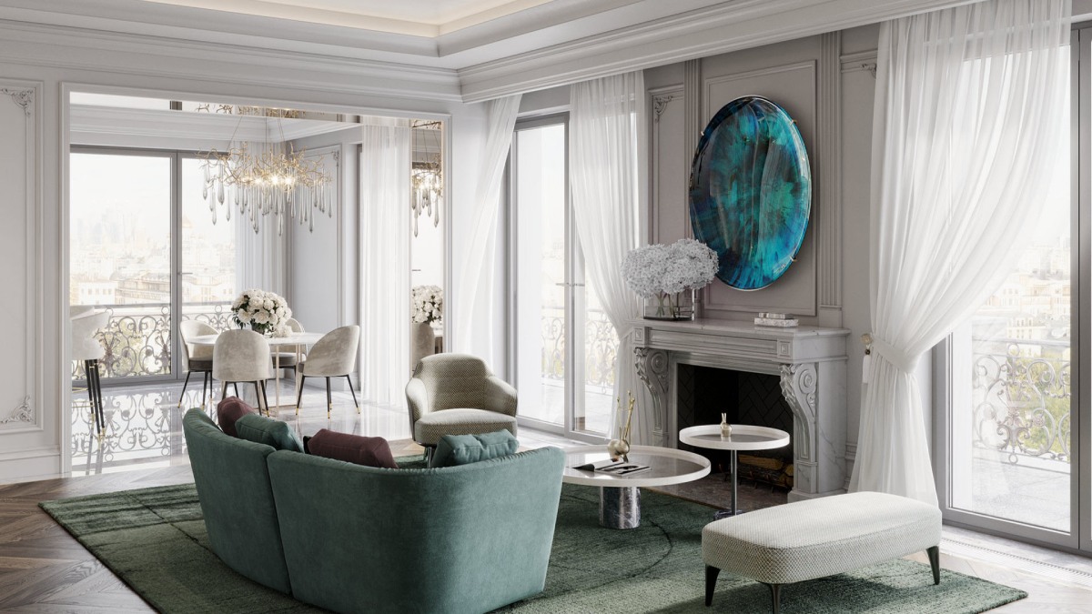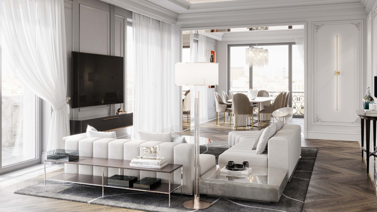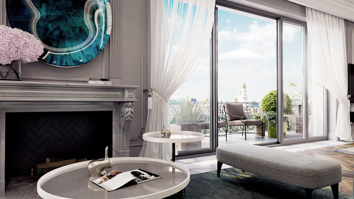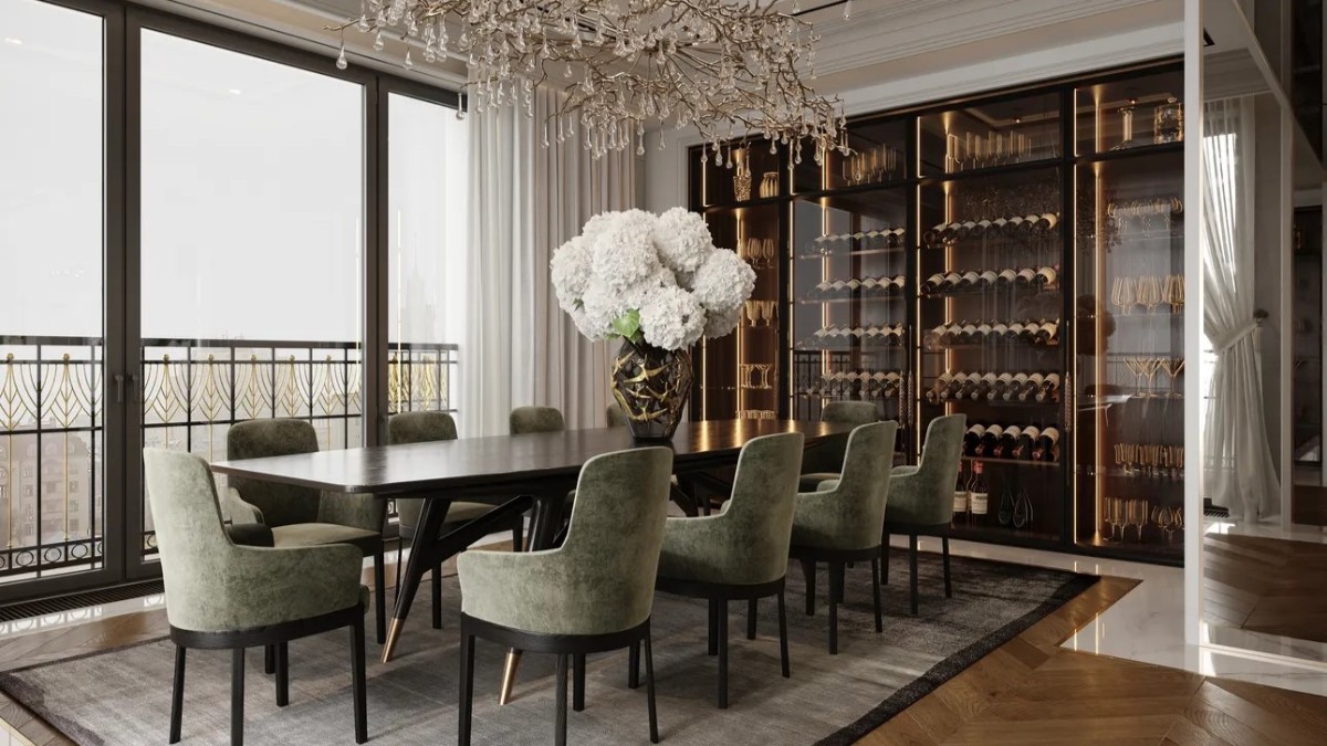 Интерьеры оформлены в эстетике сдержанной роскоши: натуральные материалы отделки, авторский декор, высокие потолки.