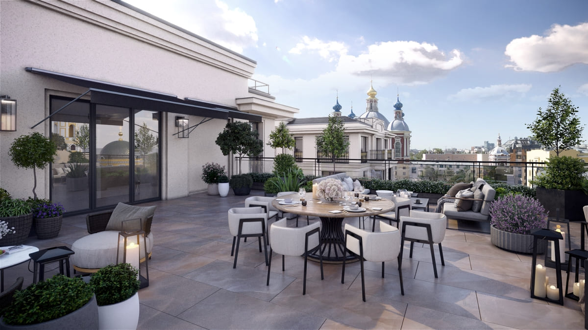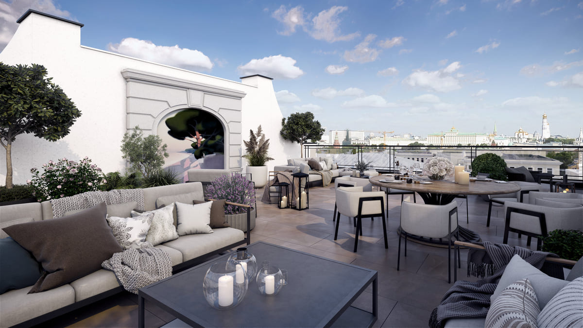 - семь уникальных пентхаусов с террасами и видами на Кремль и Москва-Сити.