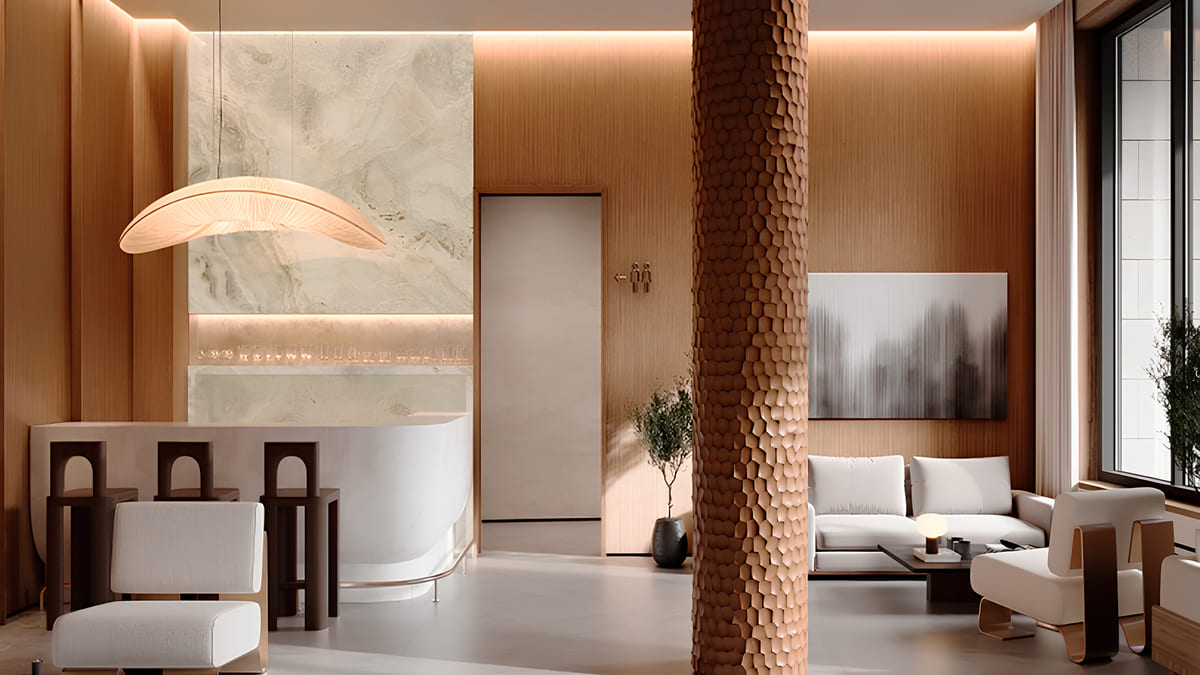 Консьерж-сервис работает круглосуточно. Мягкие зоны ожидания оформлены в тёплой, спокойной палитре – здесь хочется задержаться, поговорить, отдохнуть или просто выпить кофе, встречая утро.
