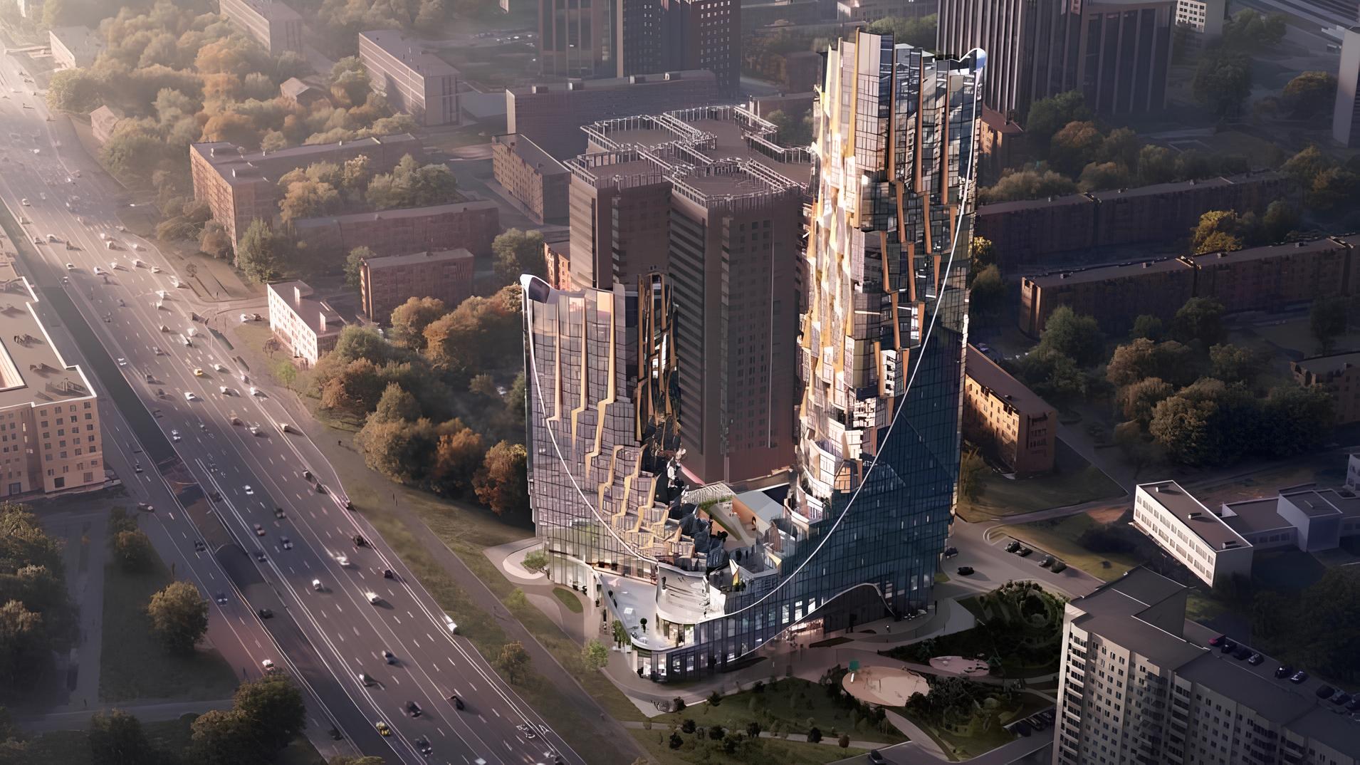 Проект включает в себя строительство двух башен, самая высокая башня достигнет примерно 178 метров, что сделает комплекс одной из архитектурных доминант этого района Москвы. Благодаря такой необычной форме, проект обещает органично вписаться в природный контекст, играя с лучами света и открывая виды на парковые зоны, которые находятся поблизости.