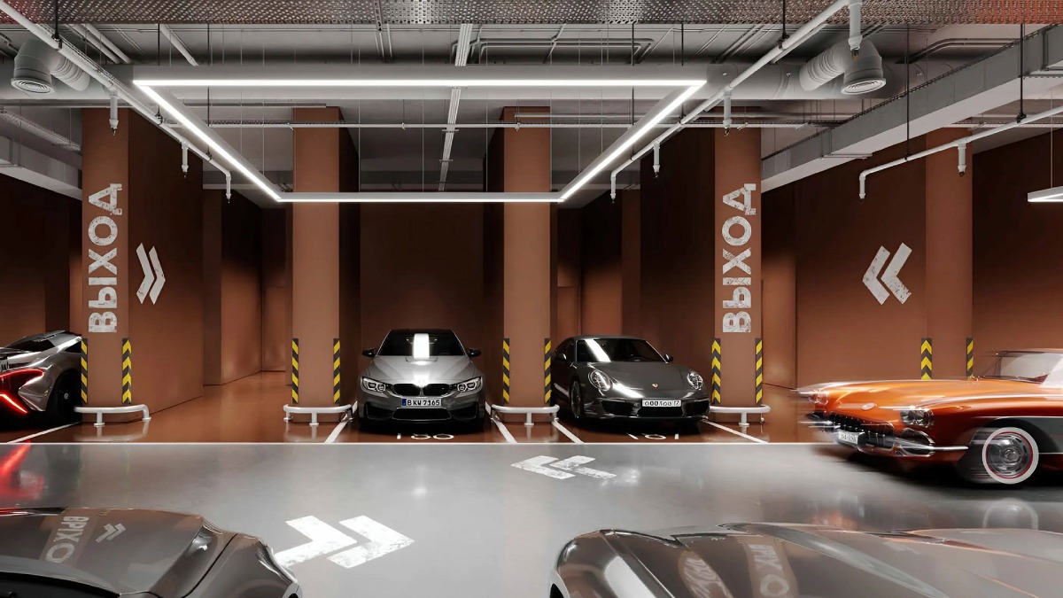 - Два двухуровневых подземных паркинга на 495 и 440 машино-мест