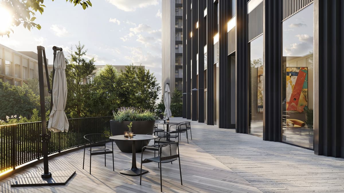 Башни SET.2, созданные бюро Kleinewelt Architekten, выполнены в терракотовых и кирпичных оттенках с алюминиевыми деталями, благодаря чему фасады выглядят тактильными и «ручной работы».