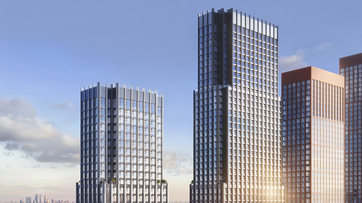 Башни SET.1, разработанные бюро СПИЧ, отличаются современными фасадами с облицовкой из алюминиевых кассет с разнообразным рельефом, создающим игру света и фактур.