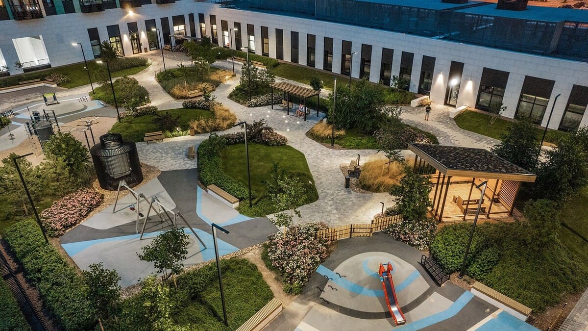 Концепция дворовых пространств разработана компанией LEGENDA с акцентом на потребности современных горожан. На территории комплекса – игровые зоны для детей, уютные места для отдыха, а также насыщенный природный ландшафт.