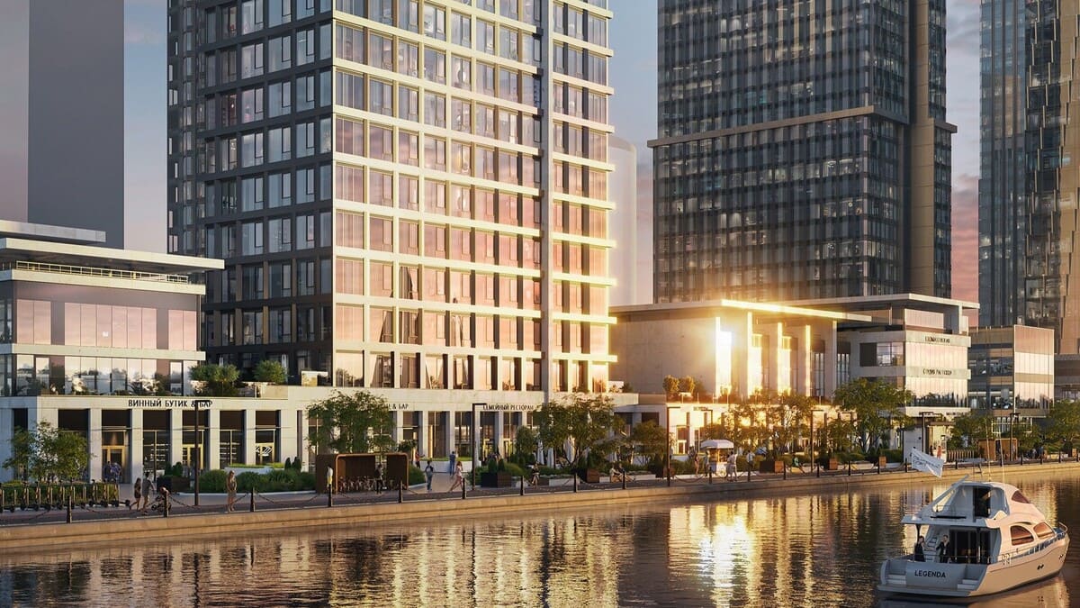 Комплекс из 11 жилых зданий раскинулся на первой линии у Москвы-реки и предлагает жителям набережную протяжённостью 2,5 км.