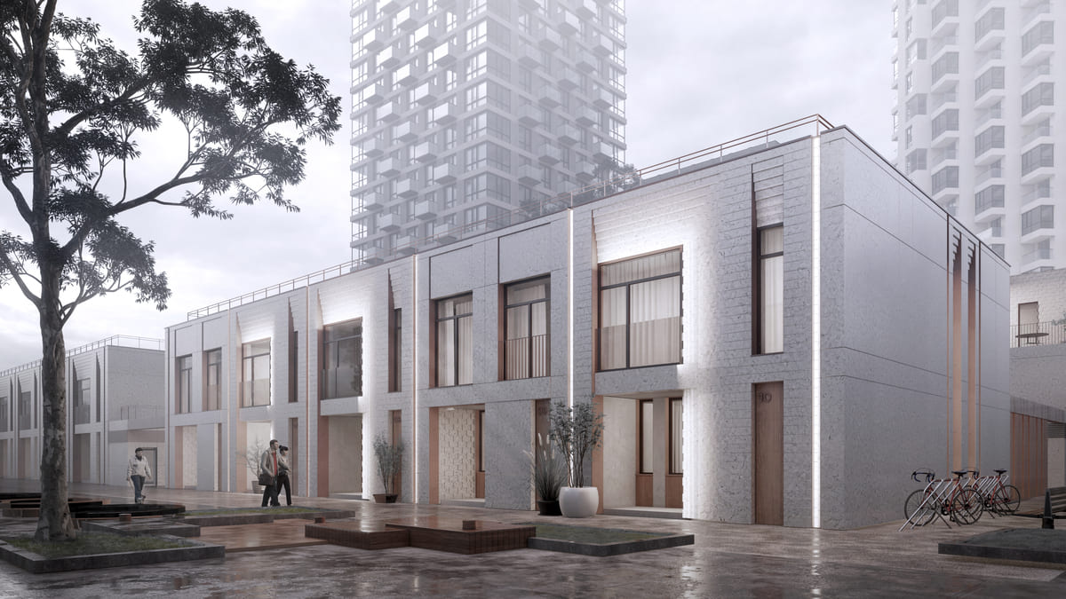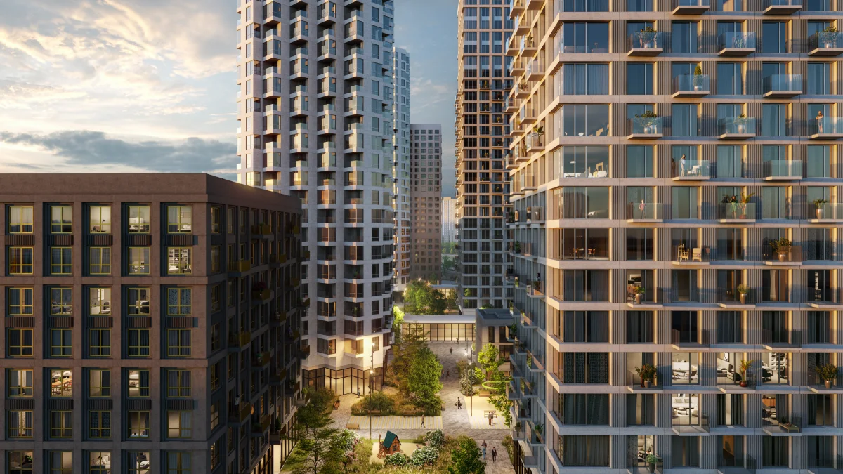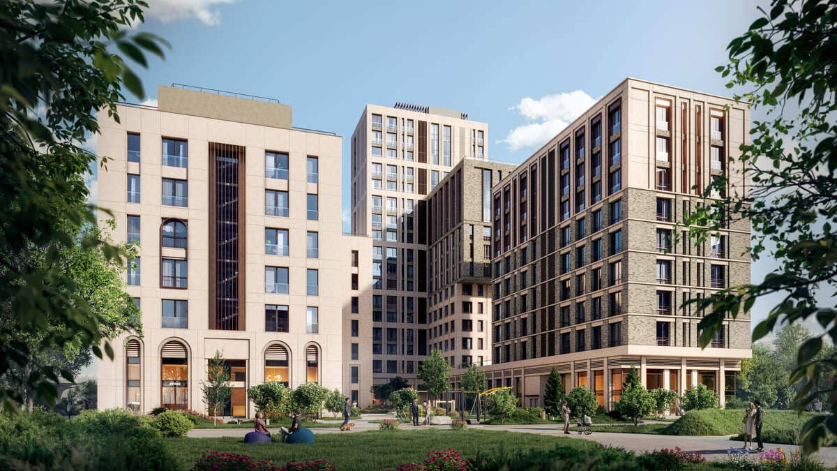 Малоэтажные дома расположены ближе к паркам и внутренним дворам, формируя более уединённую атмосферу. Такое сочетание позволяет проекту выглядеть живо, масштабно и при этом гармонично вписываться в окружающую среду.