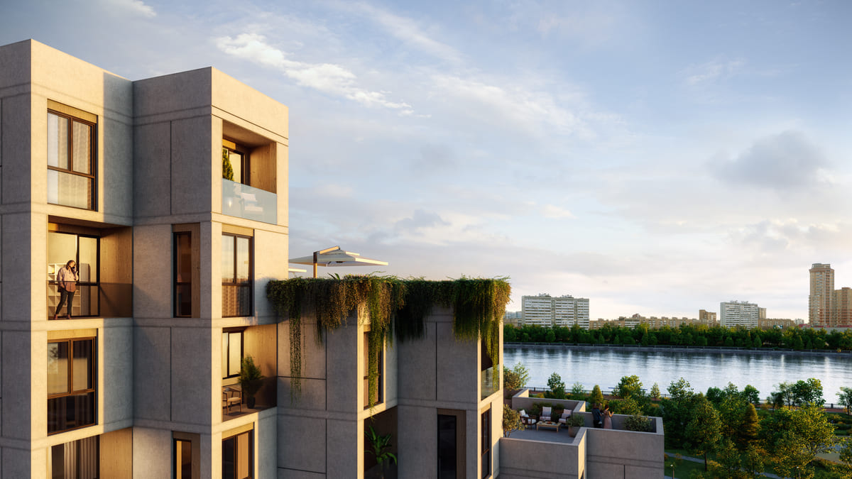 Проект сочетает в себе таунхаусы, урбан-виллы и небоскрёбы – такой подход позволяет адаптировать жилую среду под ландшафт и настроение каждой зоны. Высотные корпуса обращены к воде – они открывают впечатляющие виды на Москву-реку.
